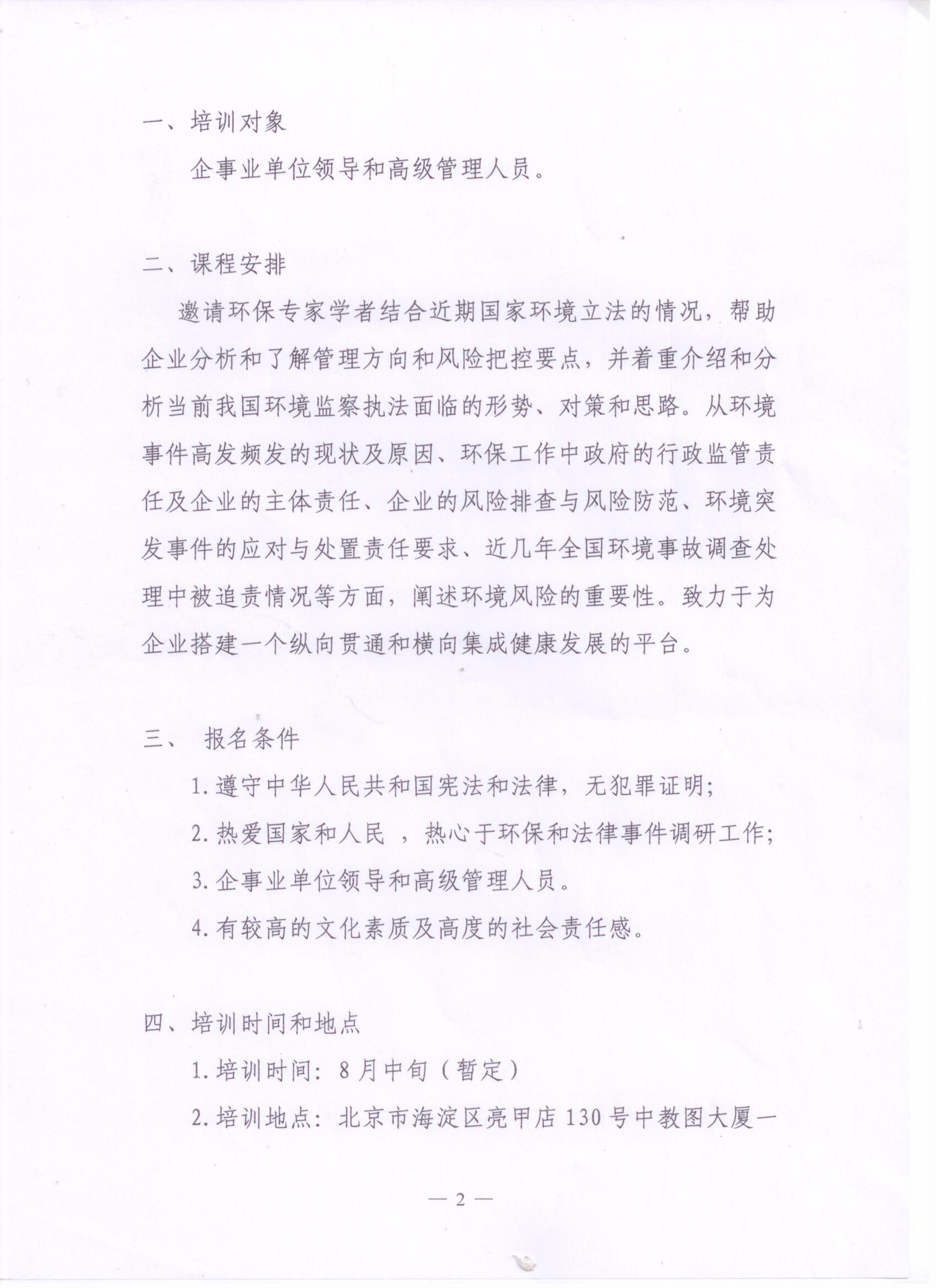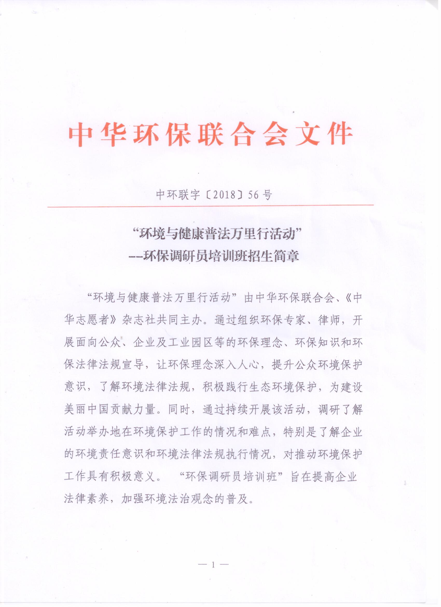 “环境与健康普法万里行活动”--环保调研员培训班招生简章