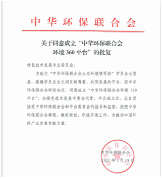 中华环保联合会环境360平台(下称平台),英文名称:All-China Environment Federation Environment 360 Platform 缩写:ACEFE360P,简称:ACEF360。2021年5月19日,中华环保联合会正式成立“中华环保联合会环境360平台”。