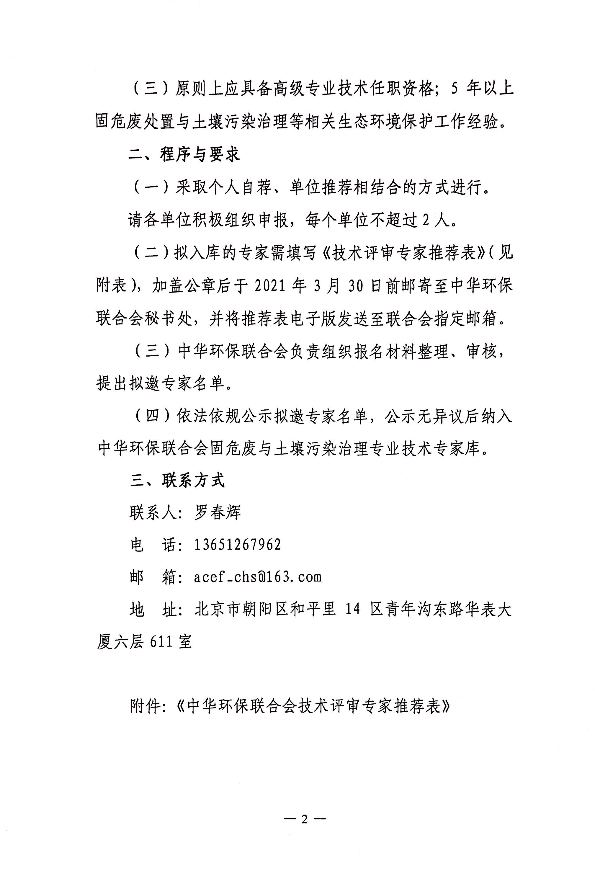 《中华环保联合会技术评审专家推荐表》
