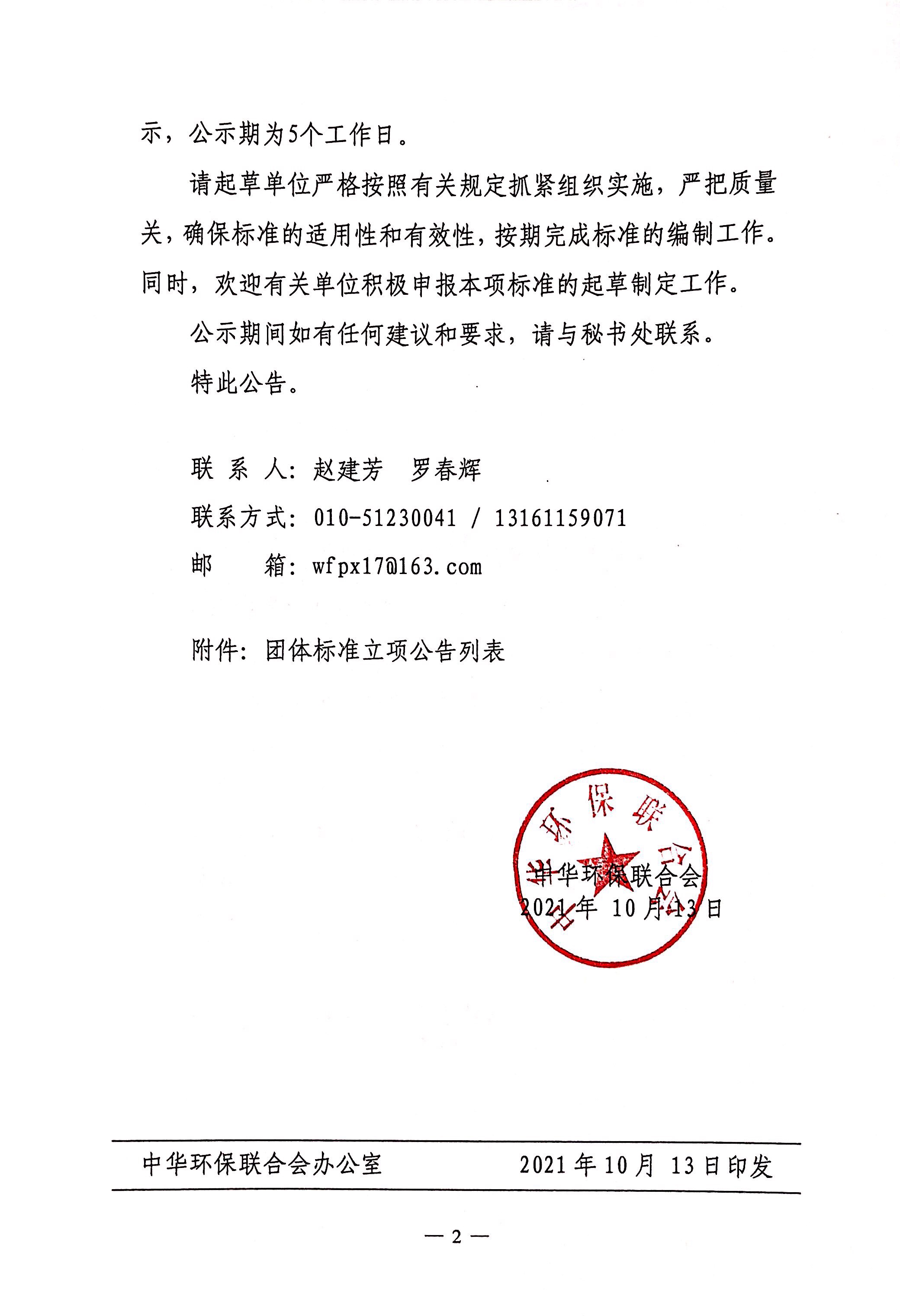 关于开展 2021年度中华环保联合会