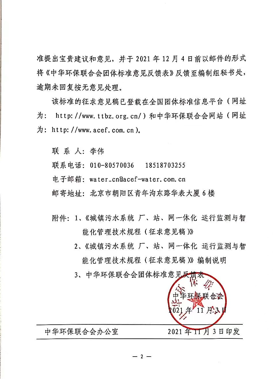 中华环保联合会团体标准意见反馈表 |