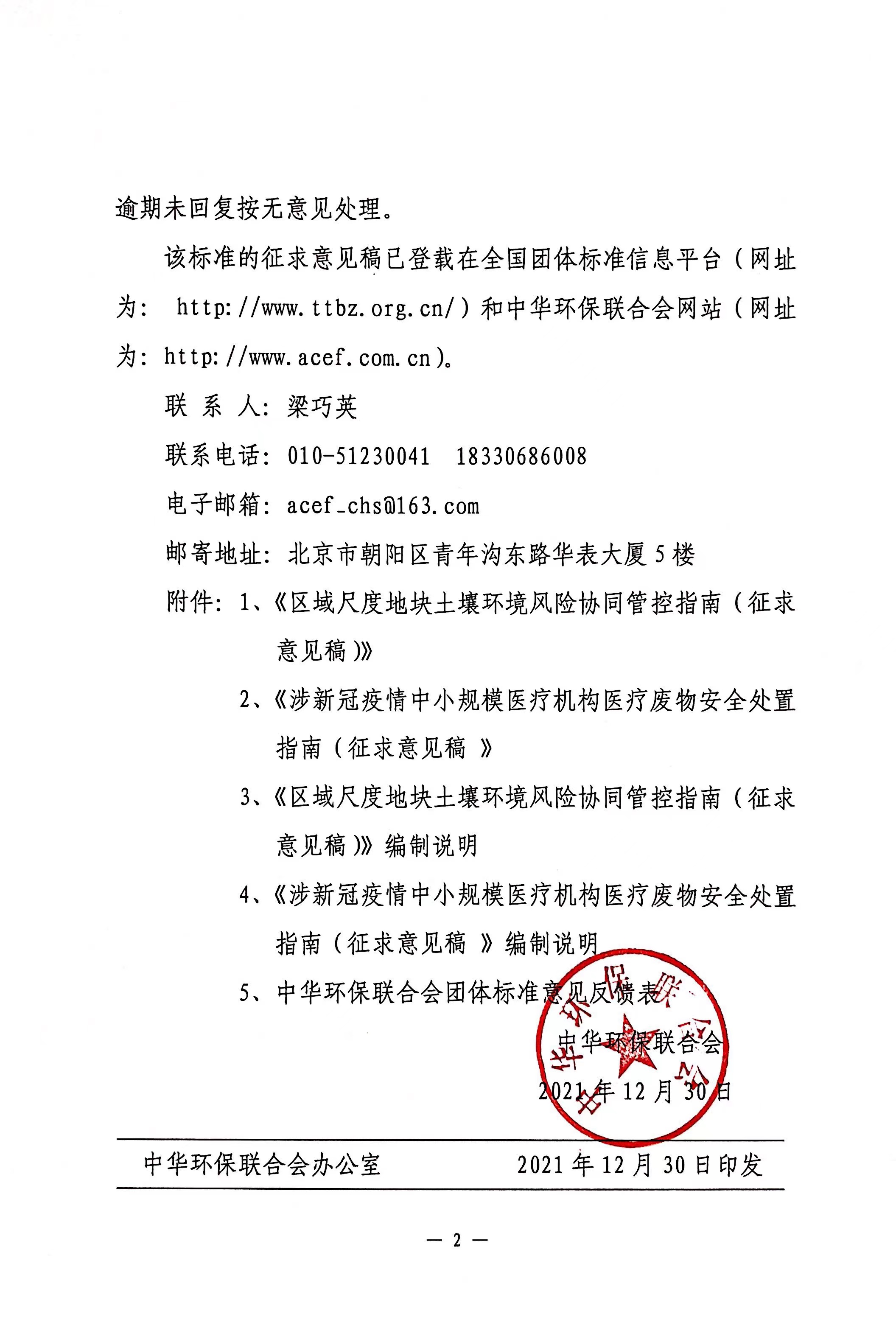 关于《区域尺度地块土壤环境风险协同管控指南》等两项团体标准征求意见的函
