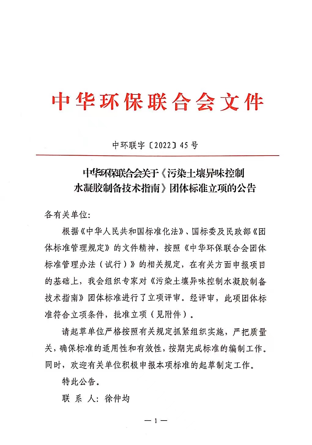 关于《污染土壤异味控制水凝胶制备技术指南》团体标准立项的公告