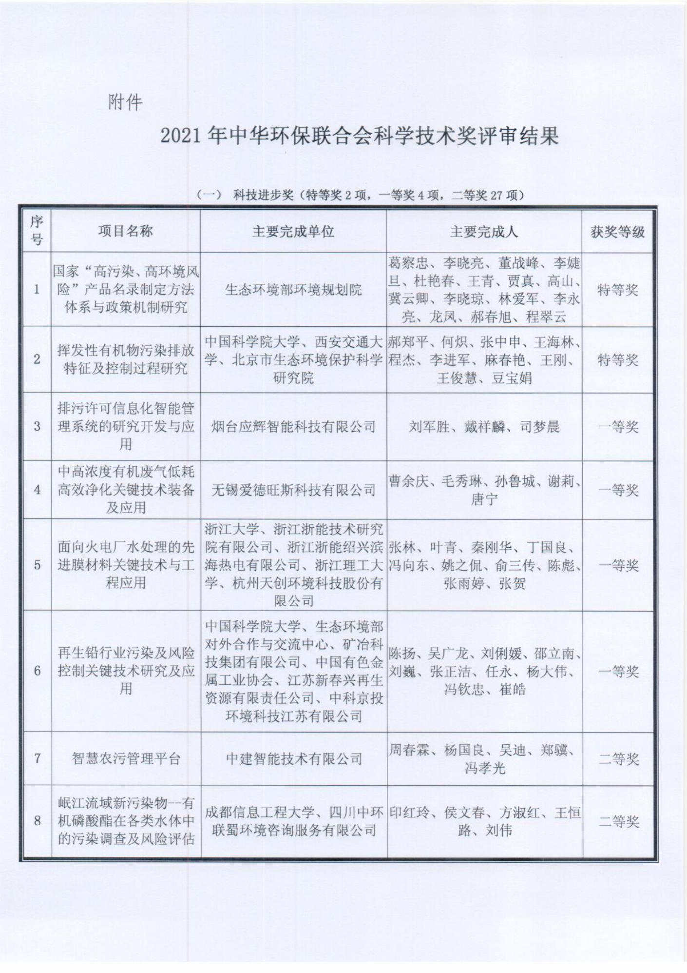 中华环保联合会科技成果评价