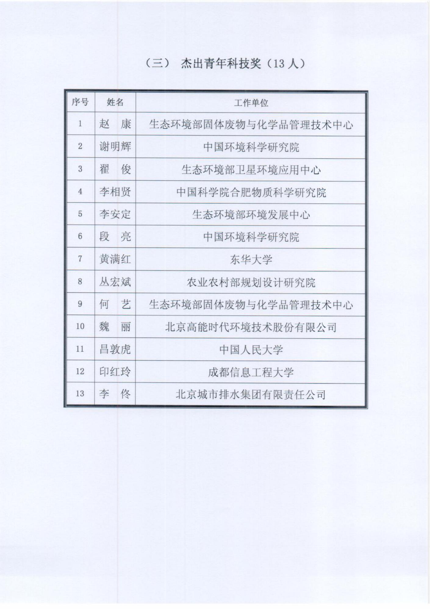 关于公布2020年度中华环保联合会
