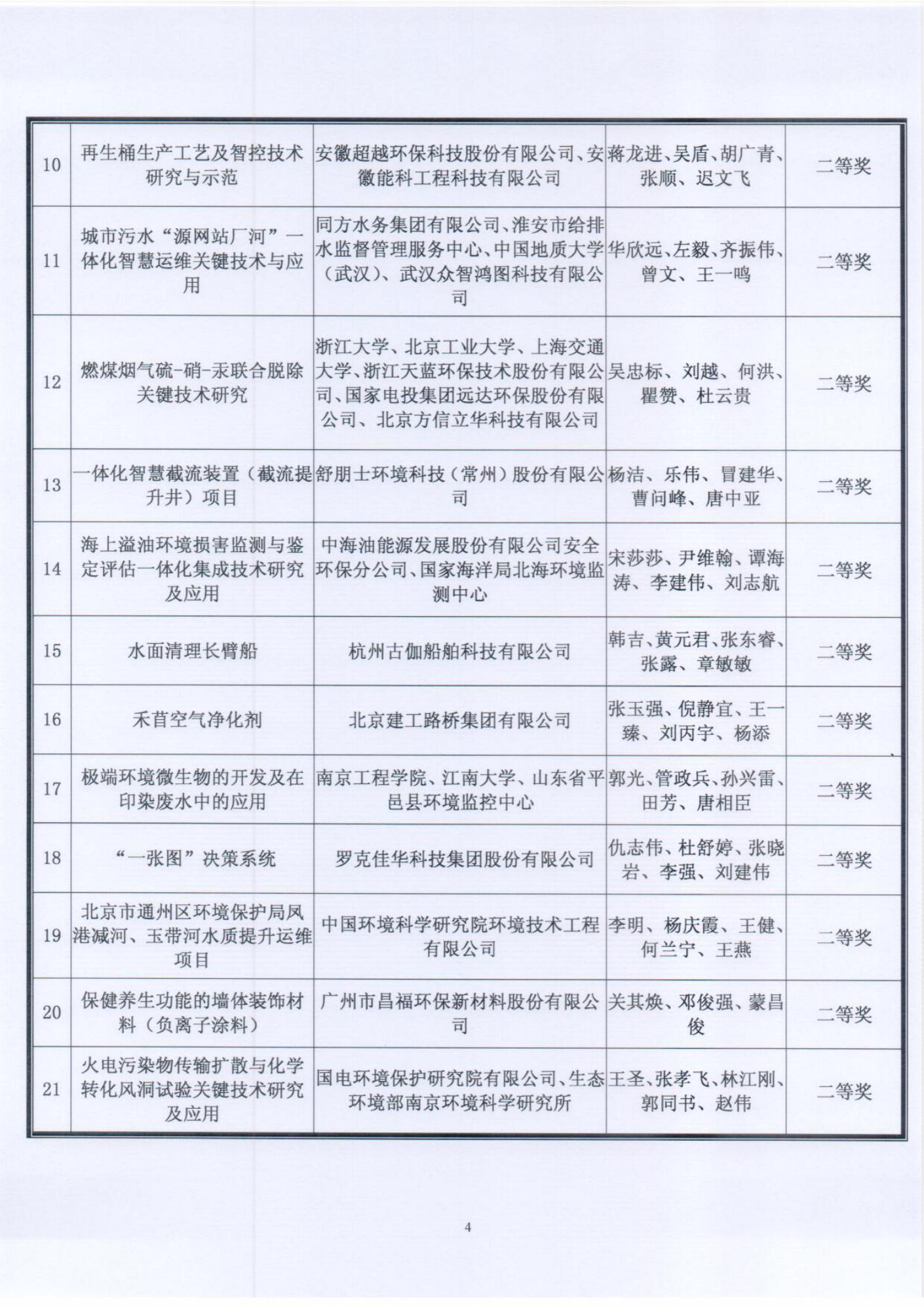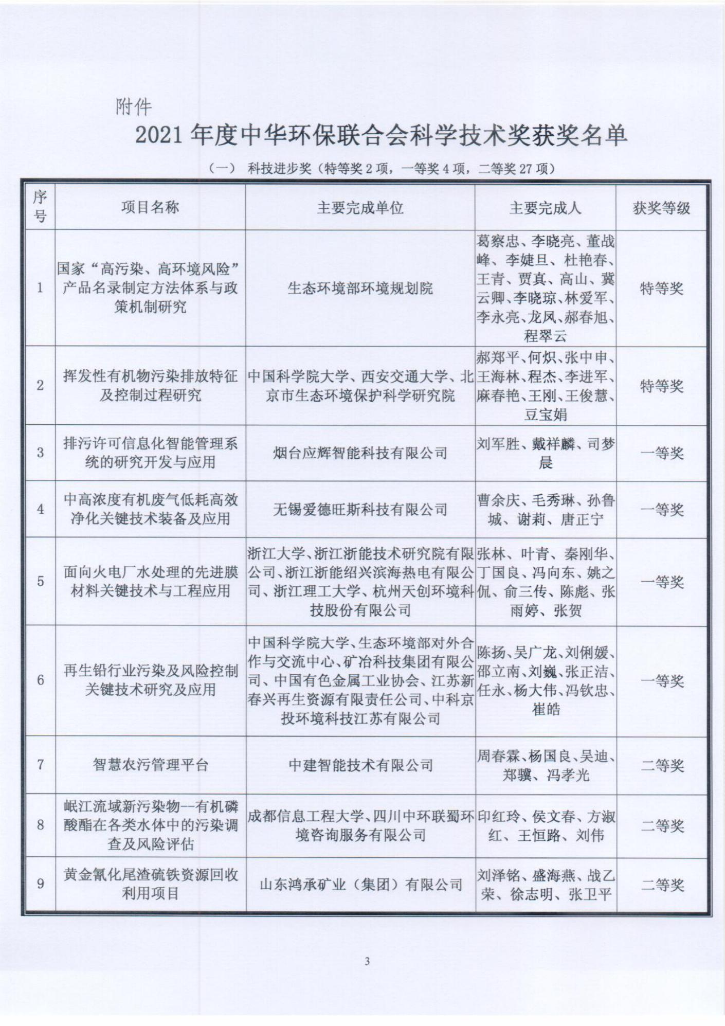 关于公布2021年度中华环保联合会科学技术奖获奖项目和个人的决定
