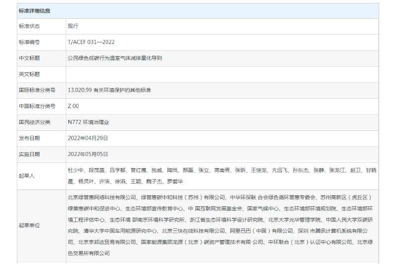 该团体标准是中华环保联合会绿色循环普惠专委会、北京绿普惠网络科技有限公司、绿普惠碳中和科技(苏州)有限公司、生态环境部宣传教育中心、中国互联网发展基金会、生态环境部环境规划院、北京大学、清华大学、人民大学、美团、阿里、腾讯、京东等多家编制单位共同的智慧结晶,饱含了编制单位对消费端减碳方向的深度思考和以团标促进生活方式绿色革命的期望。