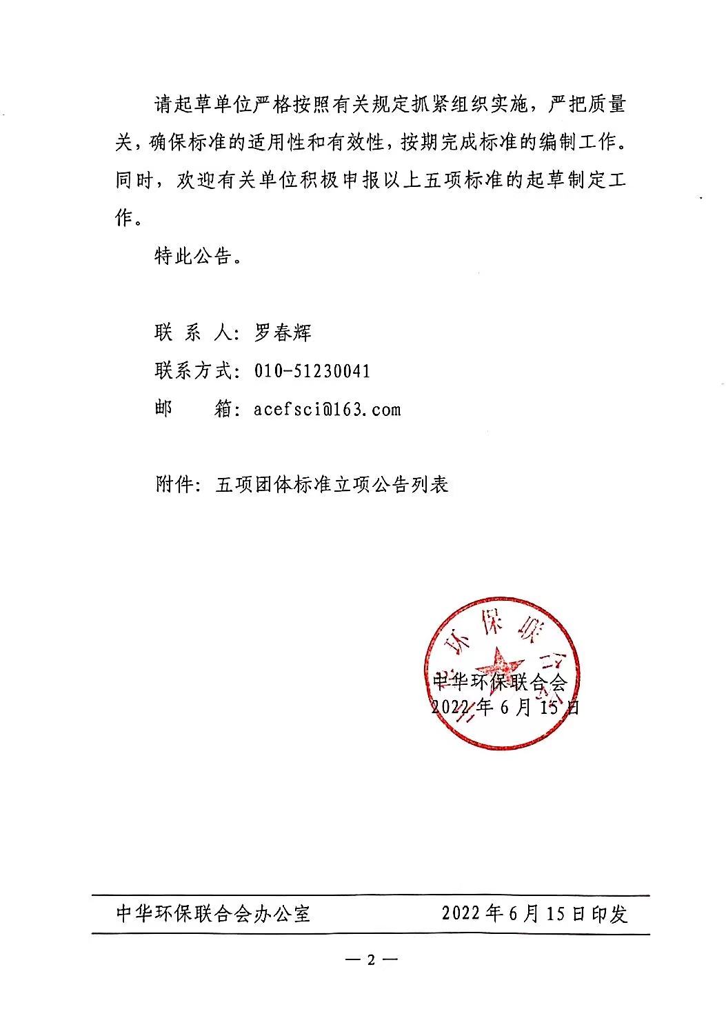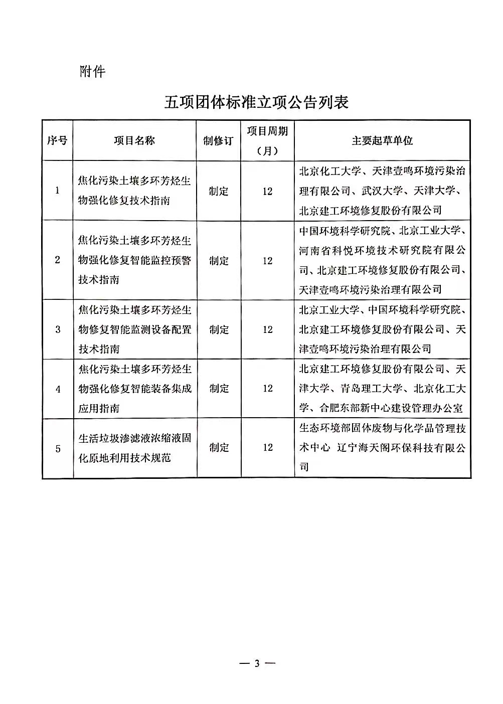 中华环保联合会关于《焦化污染土壤多环芳烃生物强化修复技术指南》《生活垃圾渗滤液浓缩液固化原地利用技术规范》等五项团体标准立项的公告