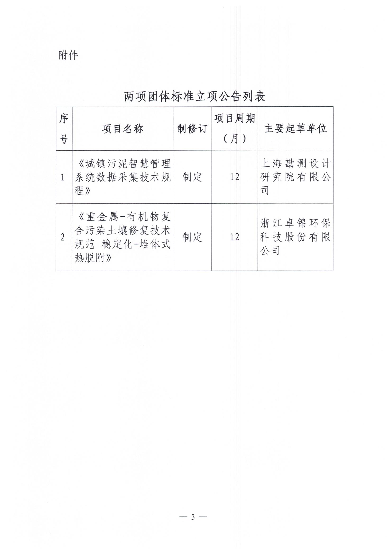 关于《城镇污泥智慧管理系统数据采集技术规程》《重金属-有机物复合污染土壤修复技术规范 稳定化-堆体式热脱附》两项团体标准的立项公告