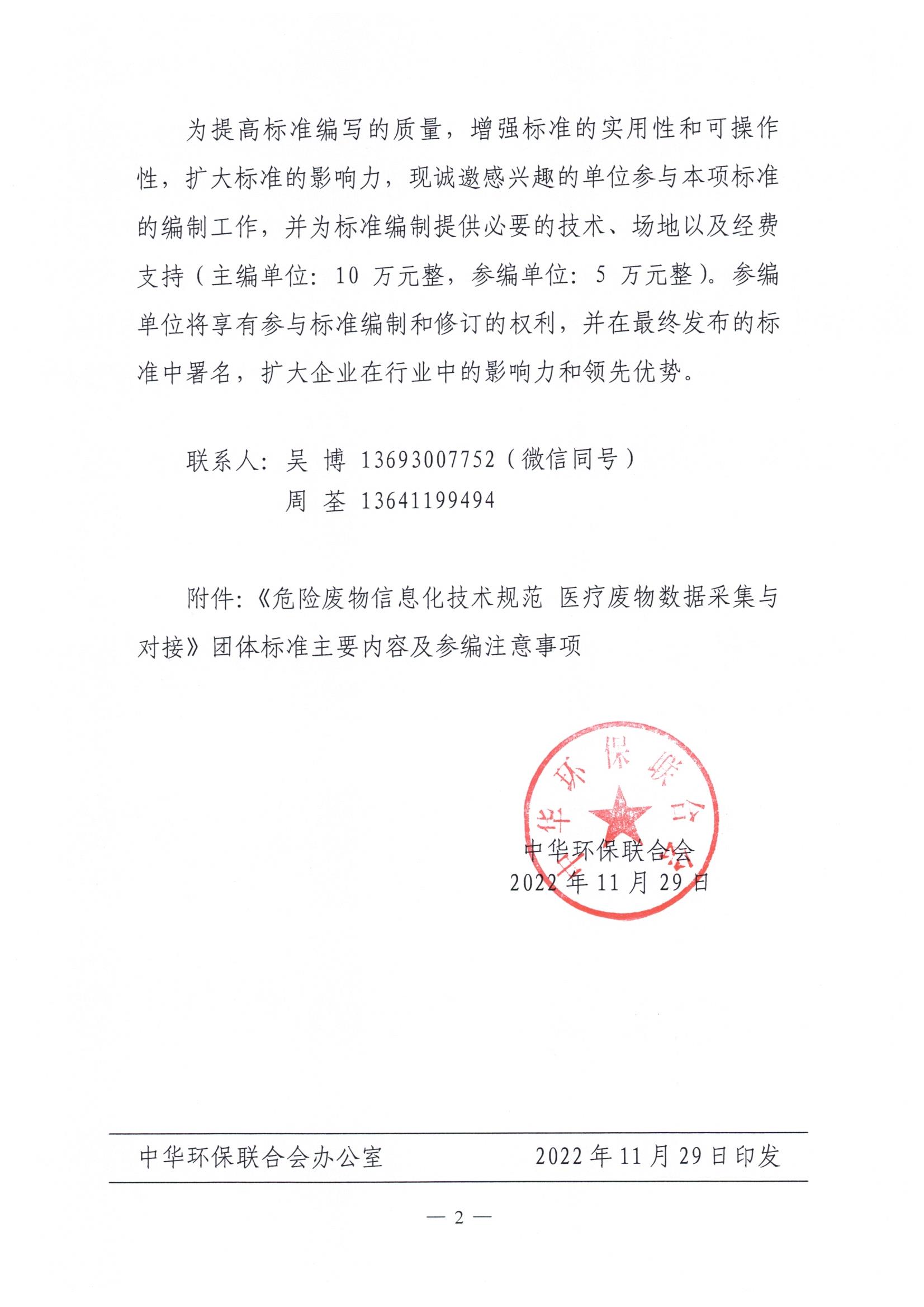 关于邀请参加《危险废物信息化技术规范 医疗废物数据采集与对接》团体标准编写的通知