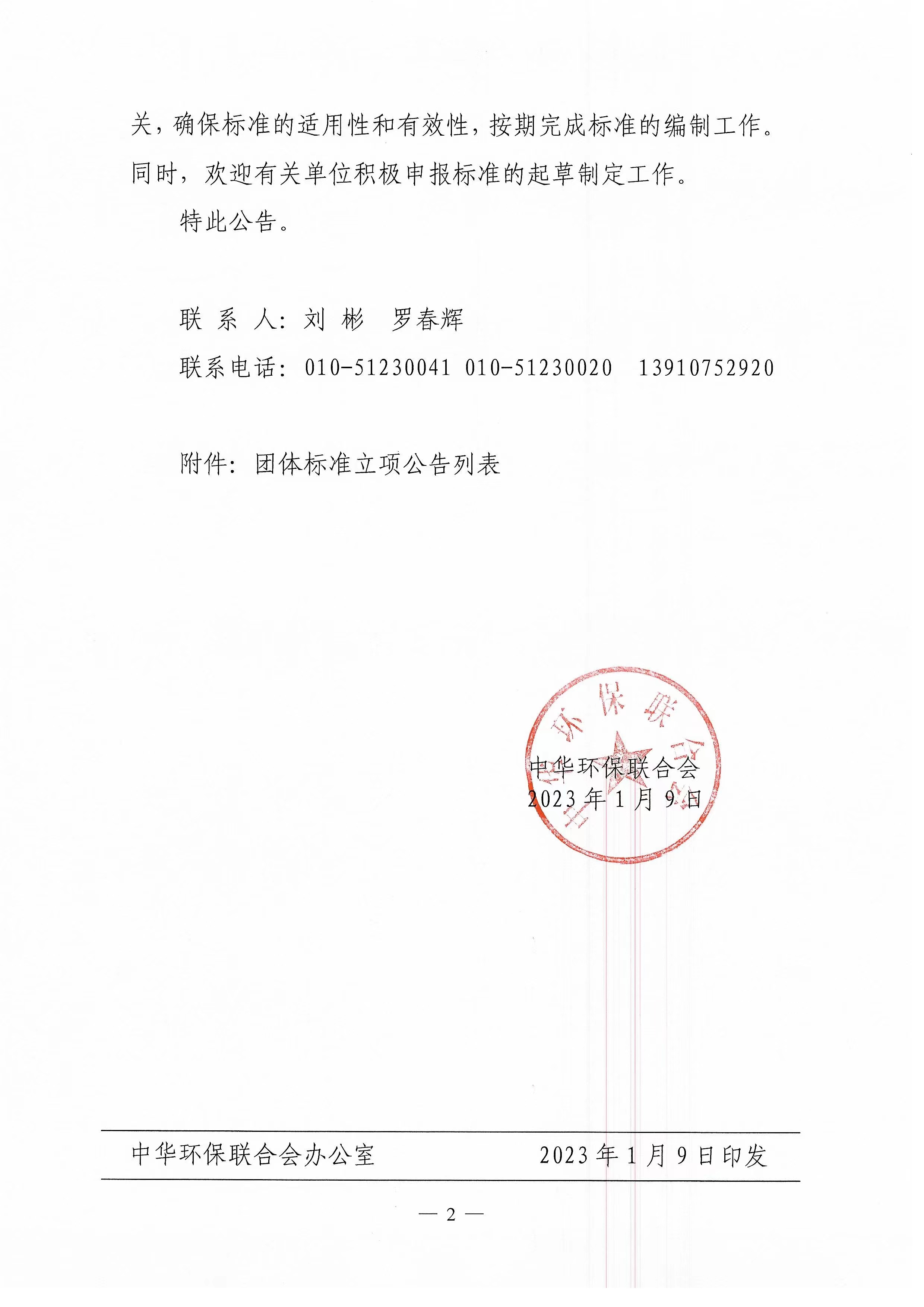 关于开展 2023年度中华环保联合会