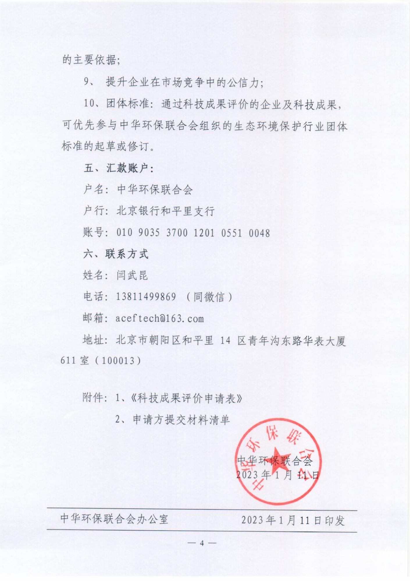 中华环保联合会科技成果评价