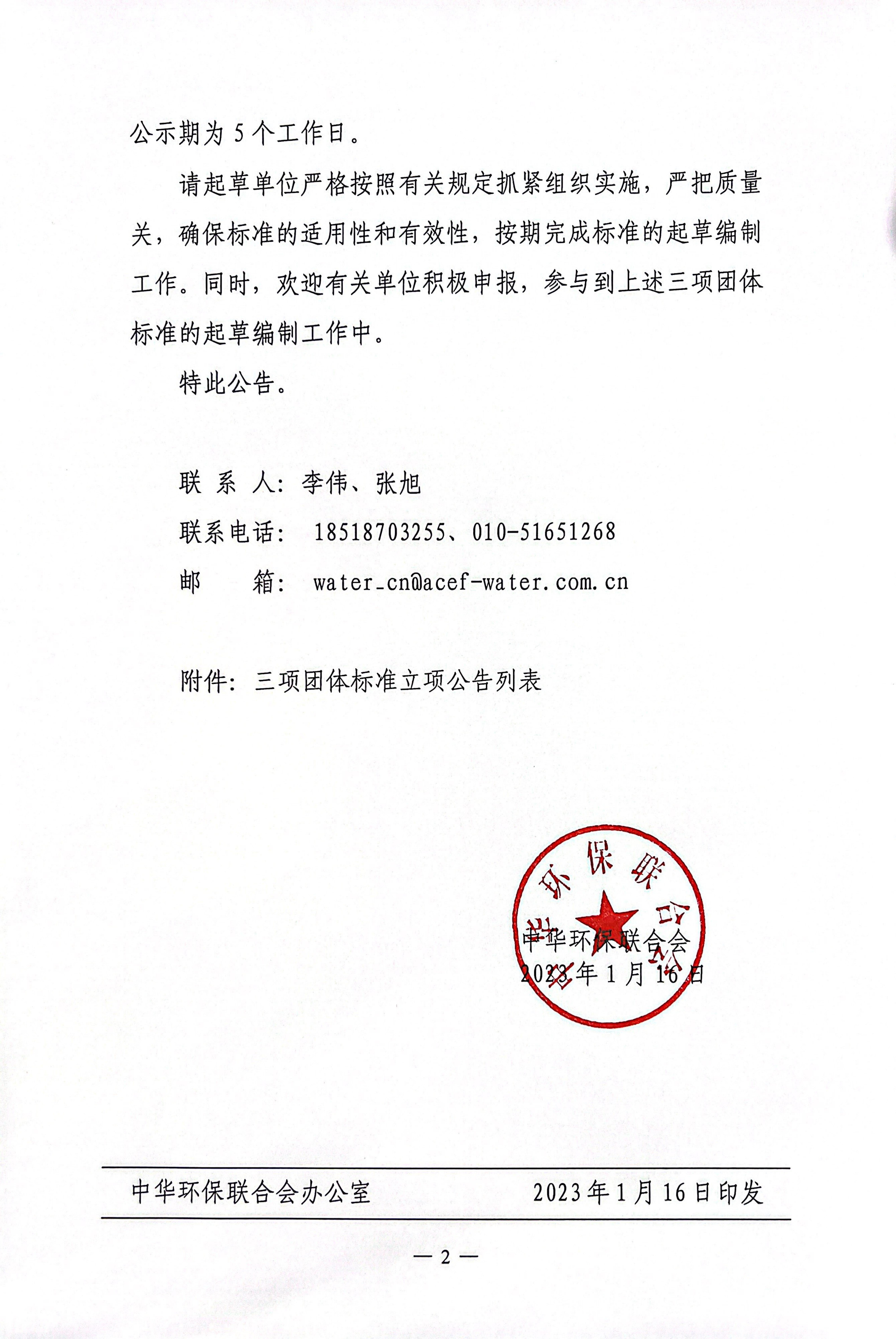 中华环保联合会关于公示2023年度