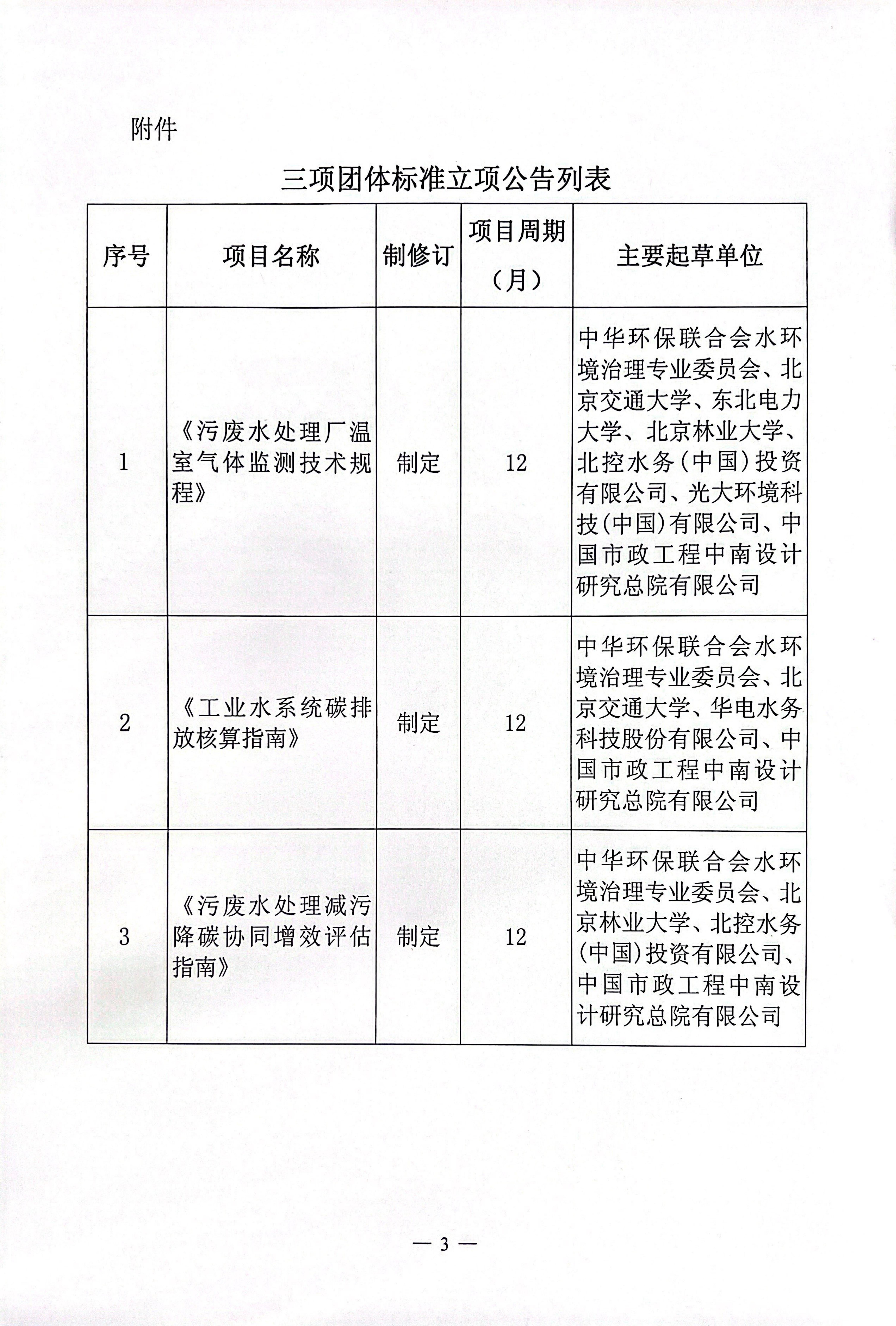 关于《污废水处理厂温室气体监测技术规程》等三项团体标准立项公告