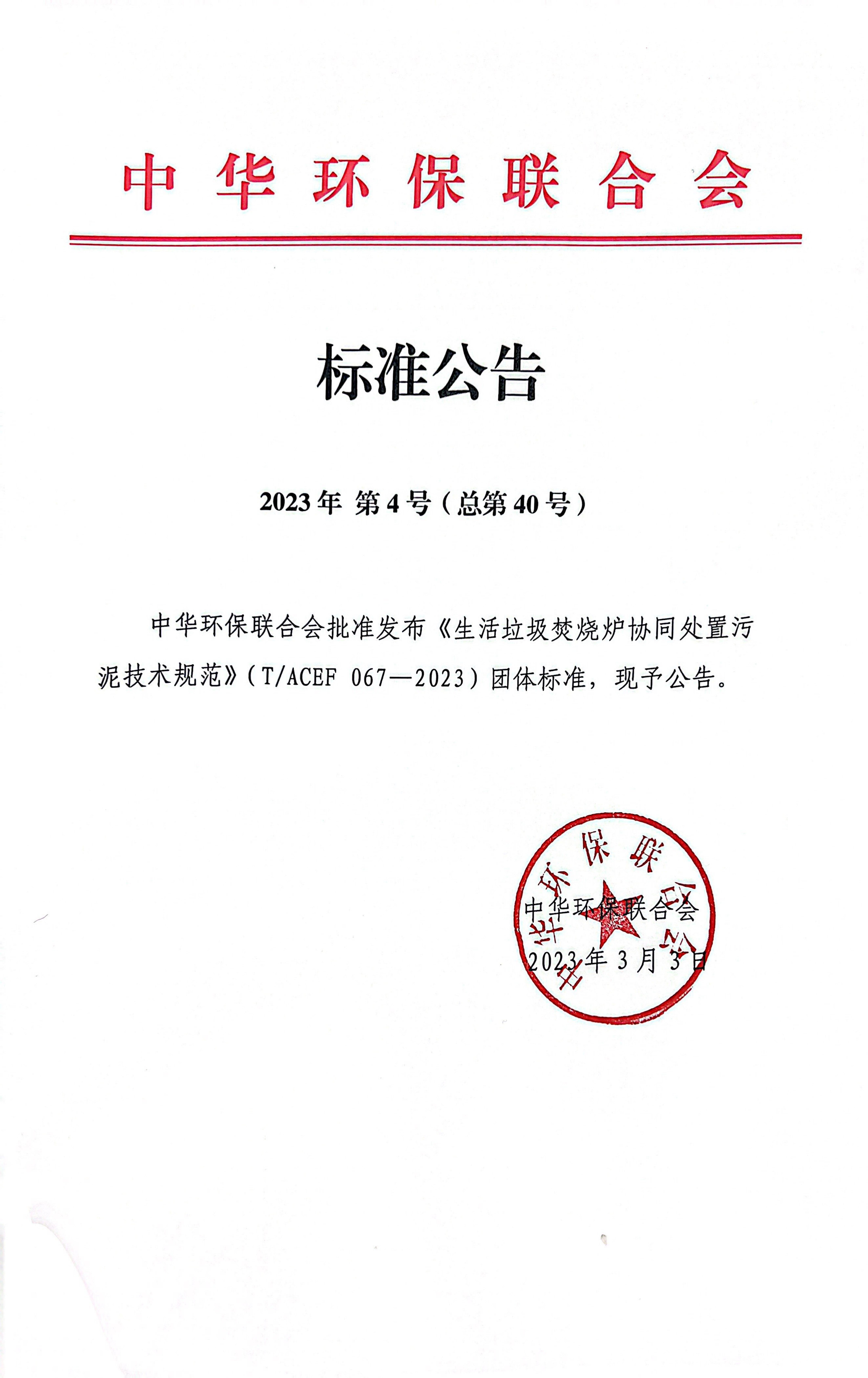 中华环保联合会关于公示2023年度