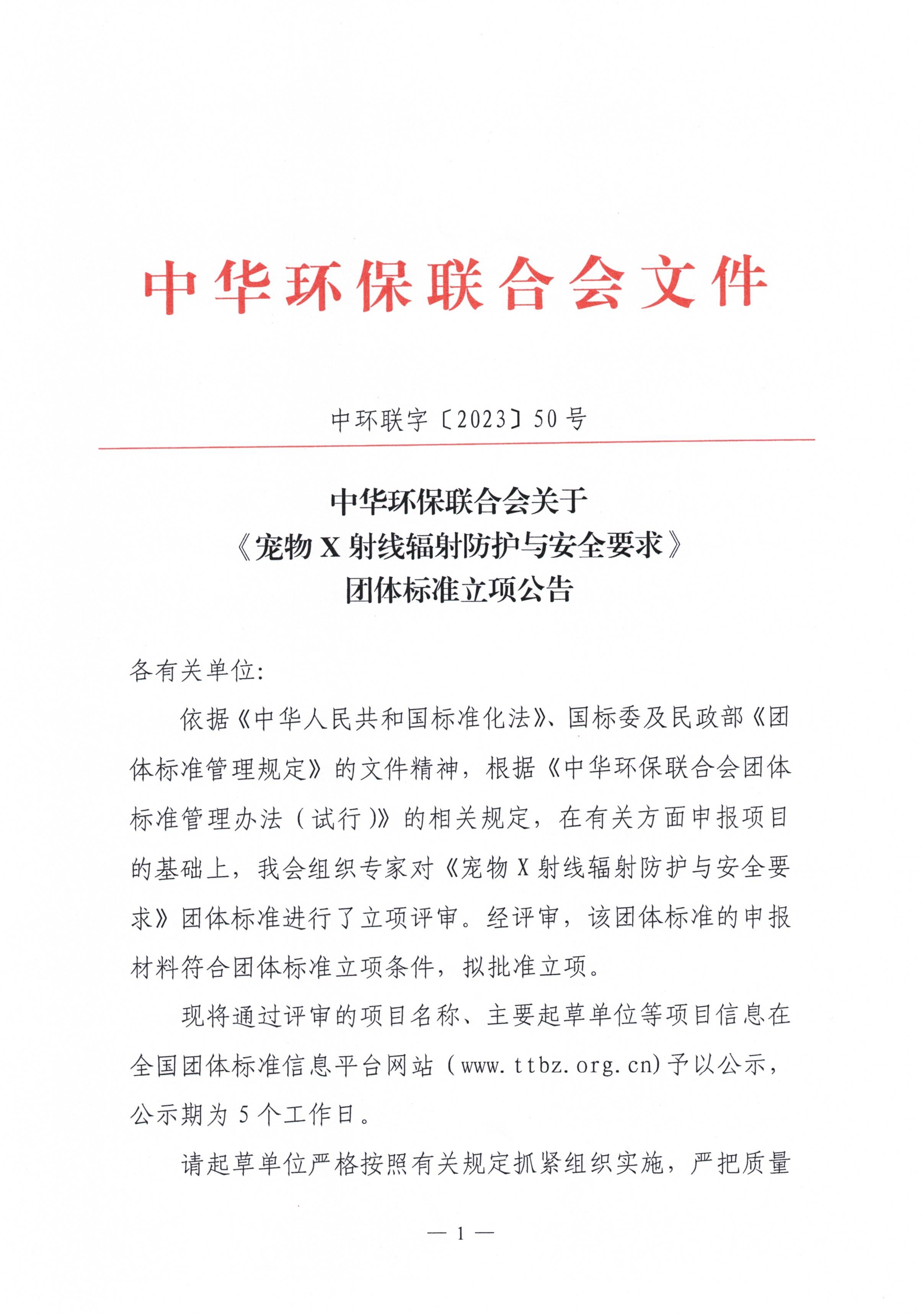 关于《宠物X射线辐射防护与安全要求》团体标准的立项公告
