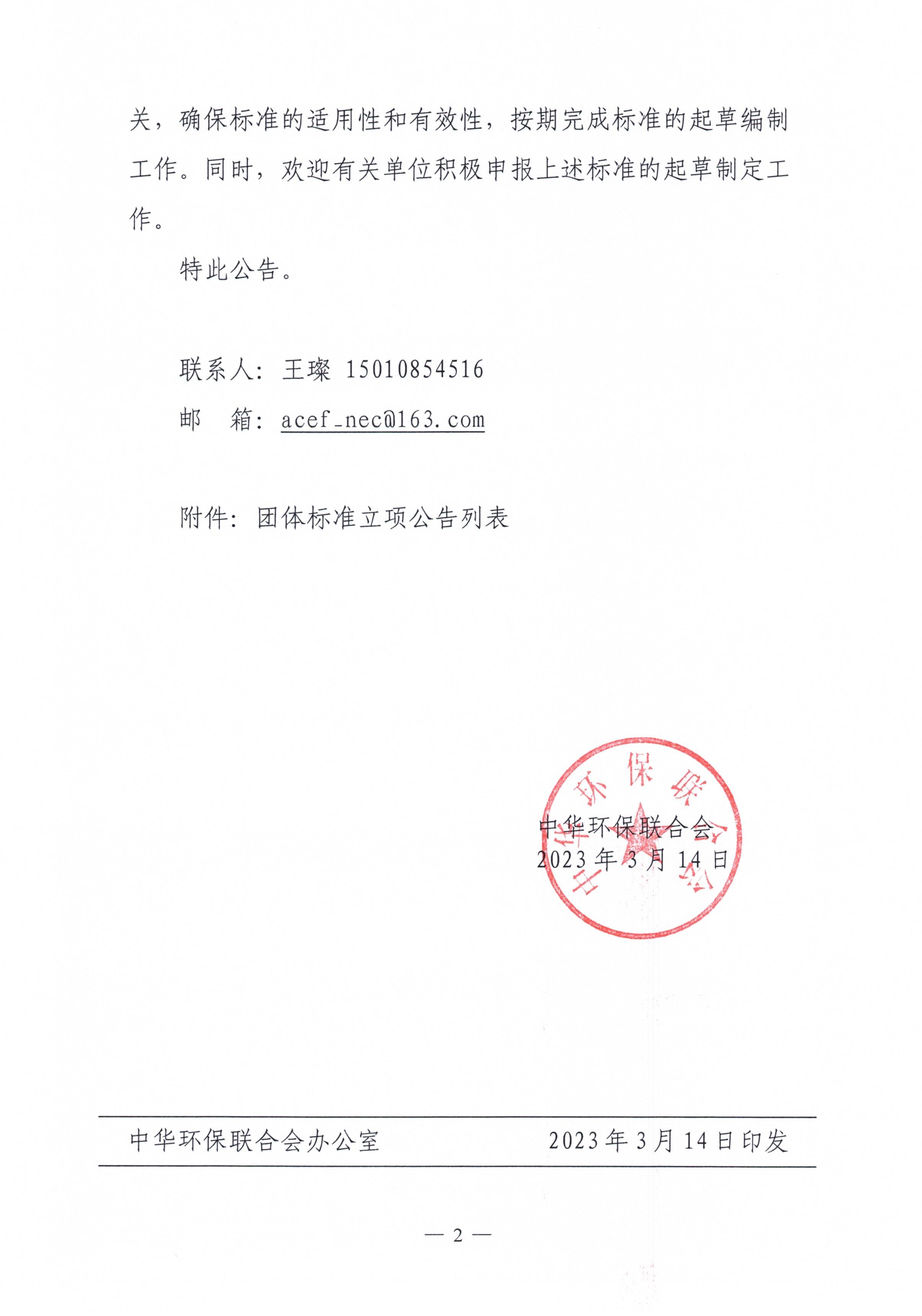 关于开展 2023年度中华环保联合会