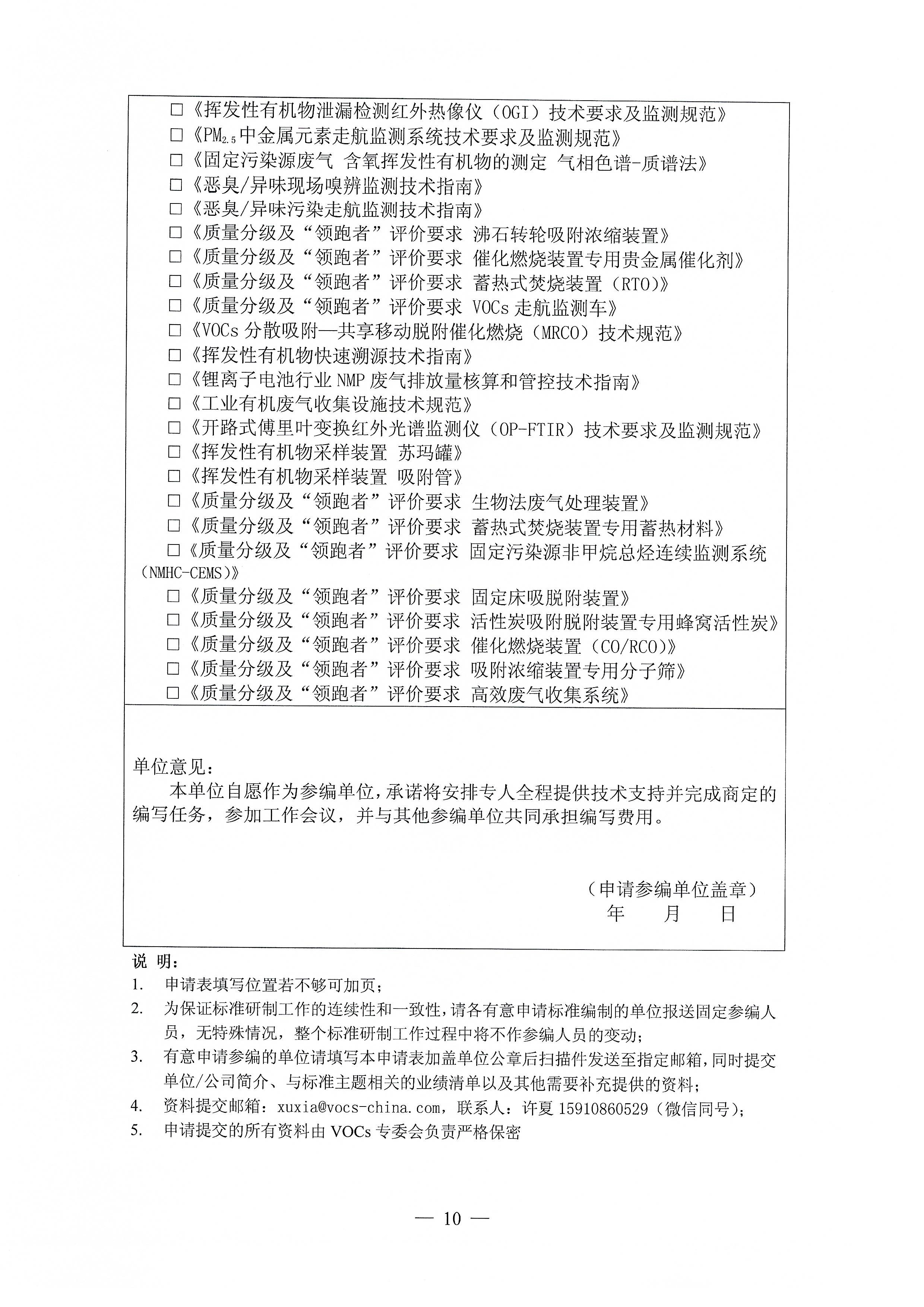 关于征集2023年度大气污染治理行业(VOCs防治领域)系列团体标准参编单位的通知