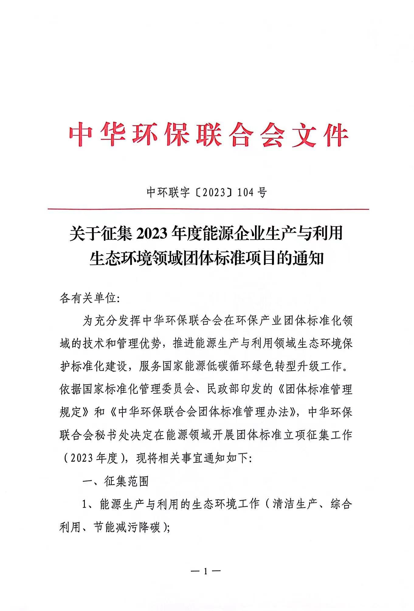 关于征集2023年度能源企业生产与利用生态环境领域团体标准项目的通知
