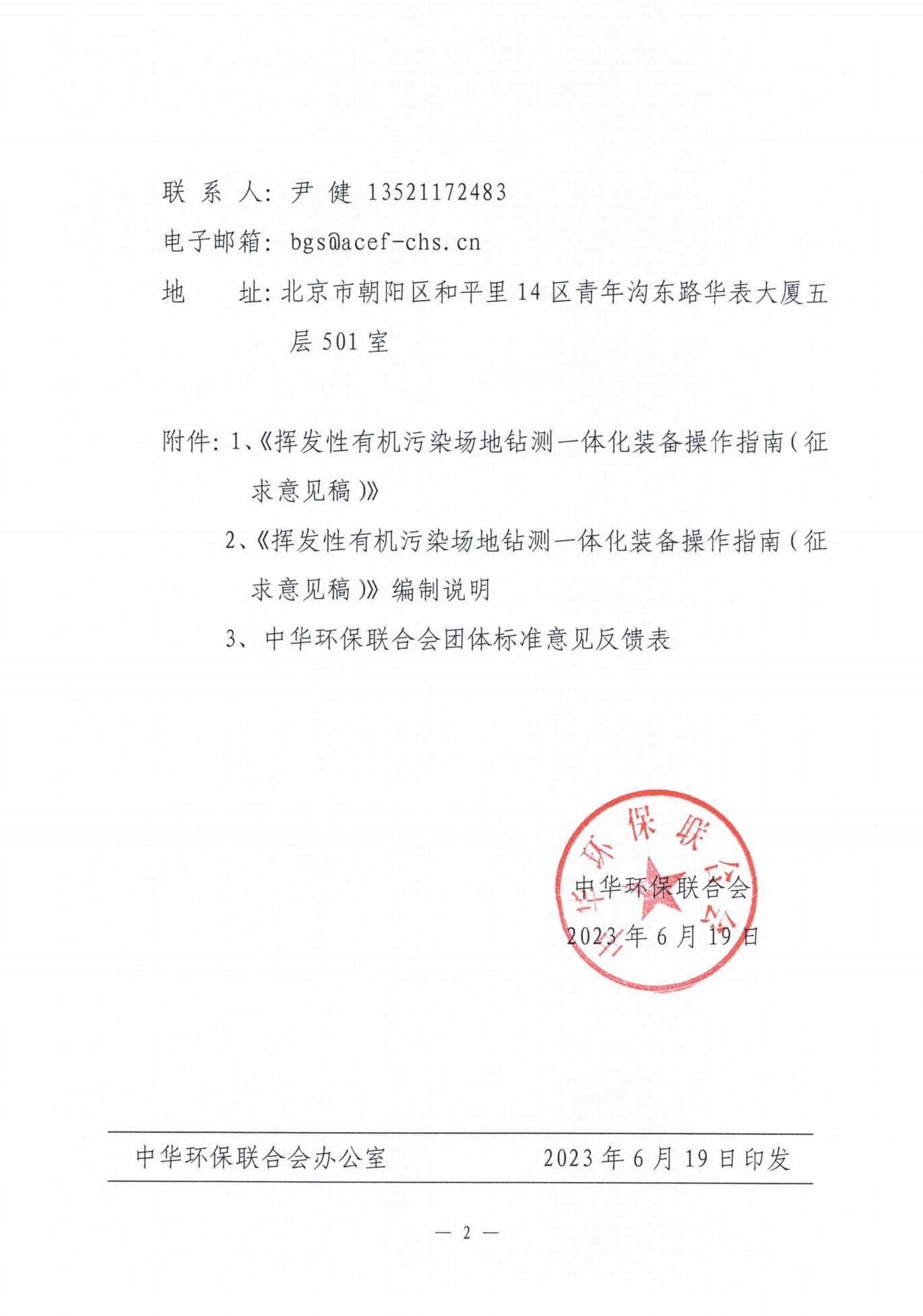 关于《挥发性有机污染场地钻测一体化装备操作指南》团体标准征求意见的函