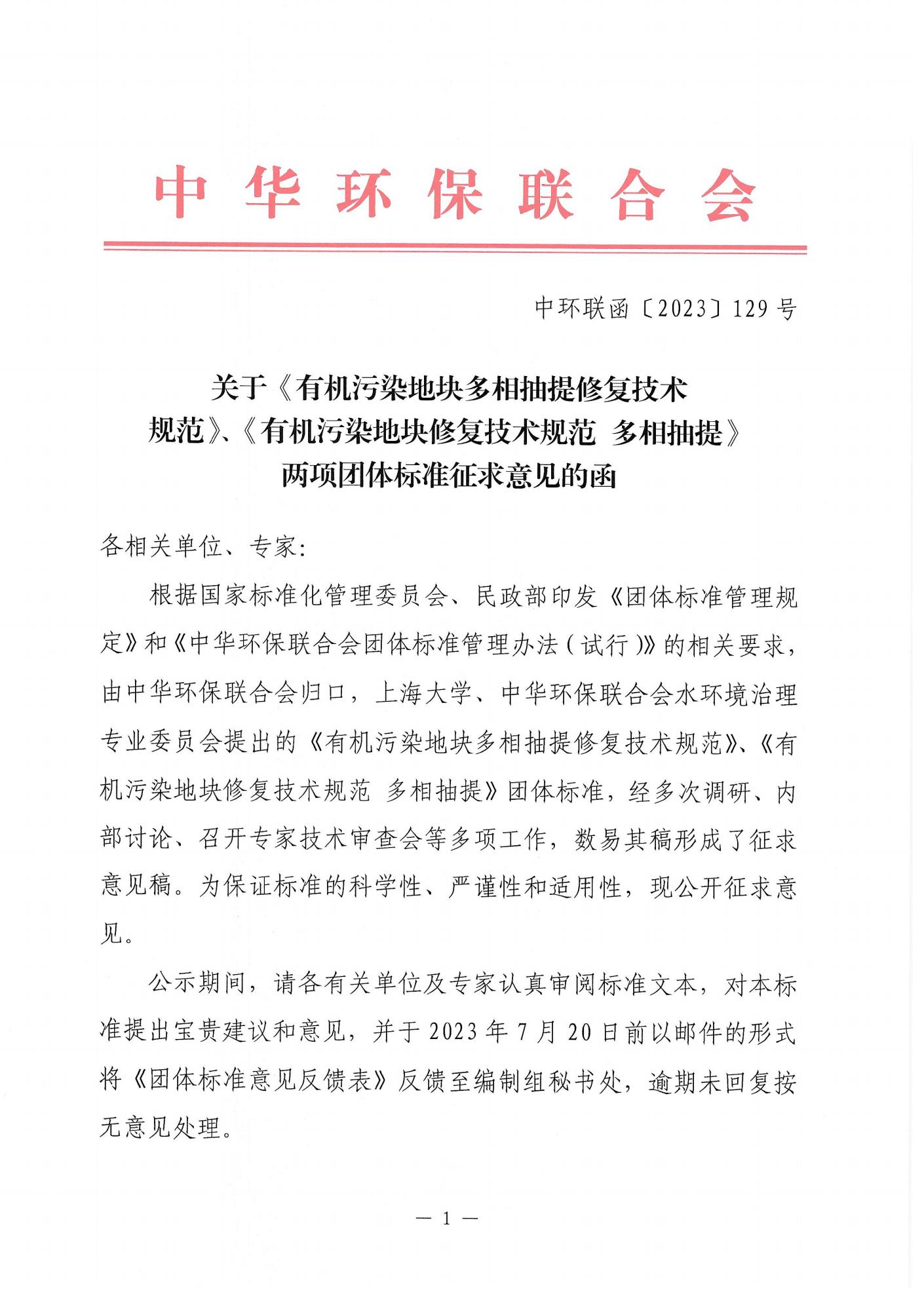 1、《有机污染地块多相抽提修复技术规范(征求意见稿)》 |