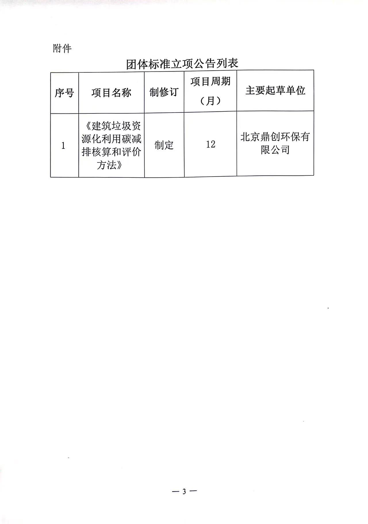 关于《建筑垃圾资源化利用碳减排核算和评价方法》团体标准的立项公告