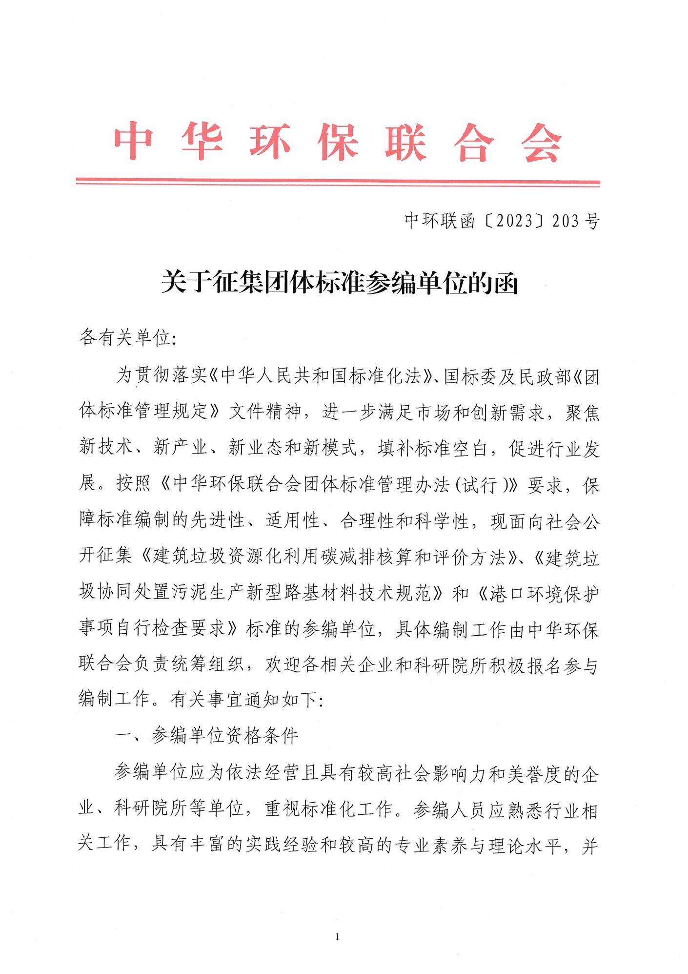 关于征集团体标准参编单位的函