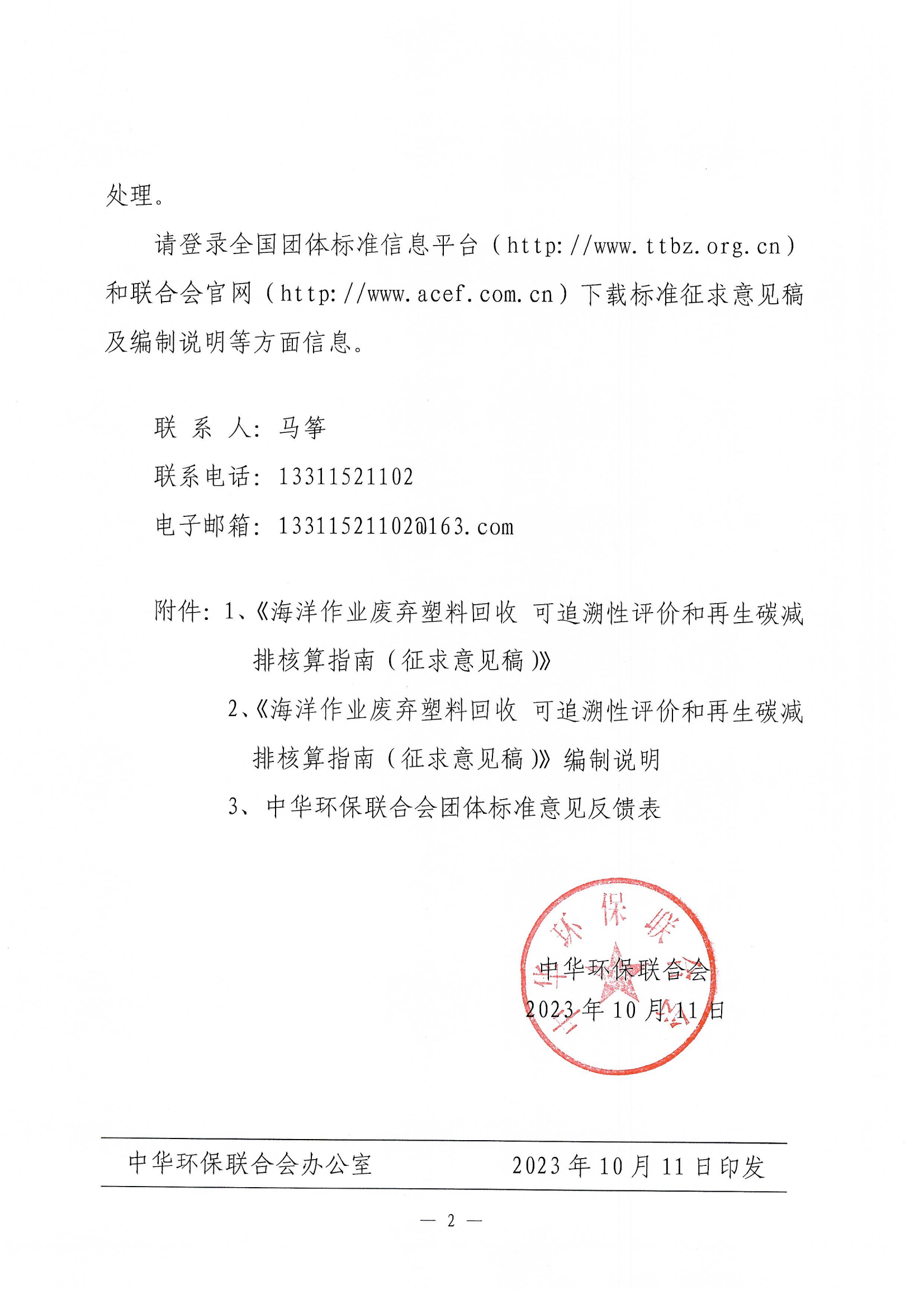 关于团体标准《海洋作业废弃塑料回收 可追溯性评价和再生碳减排核算指南》征求意见的函