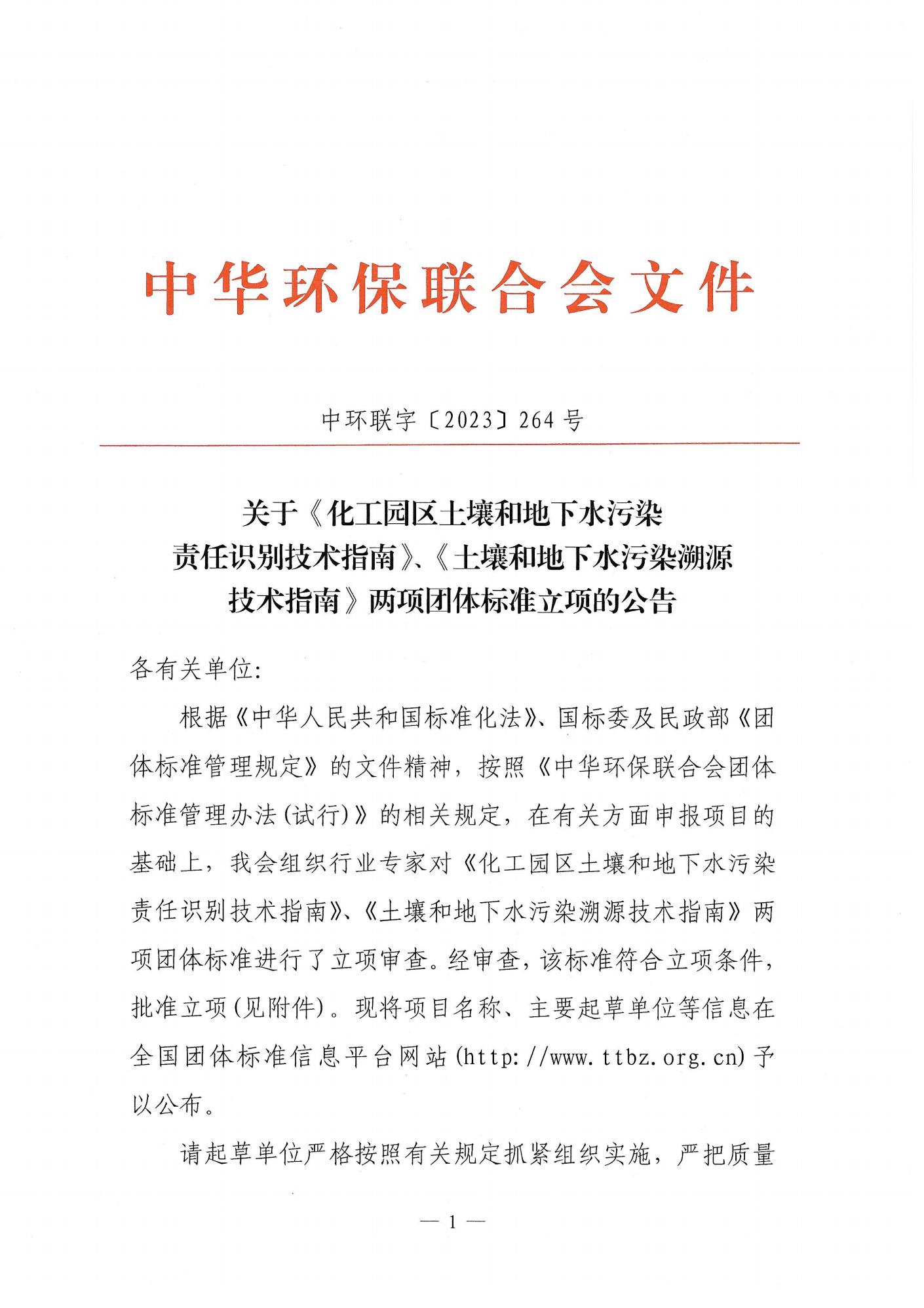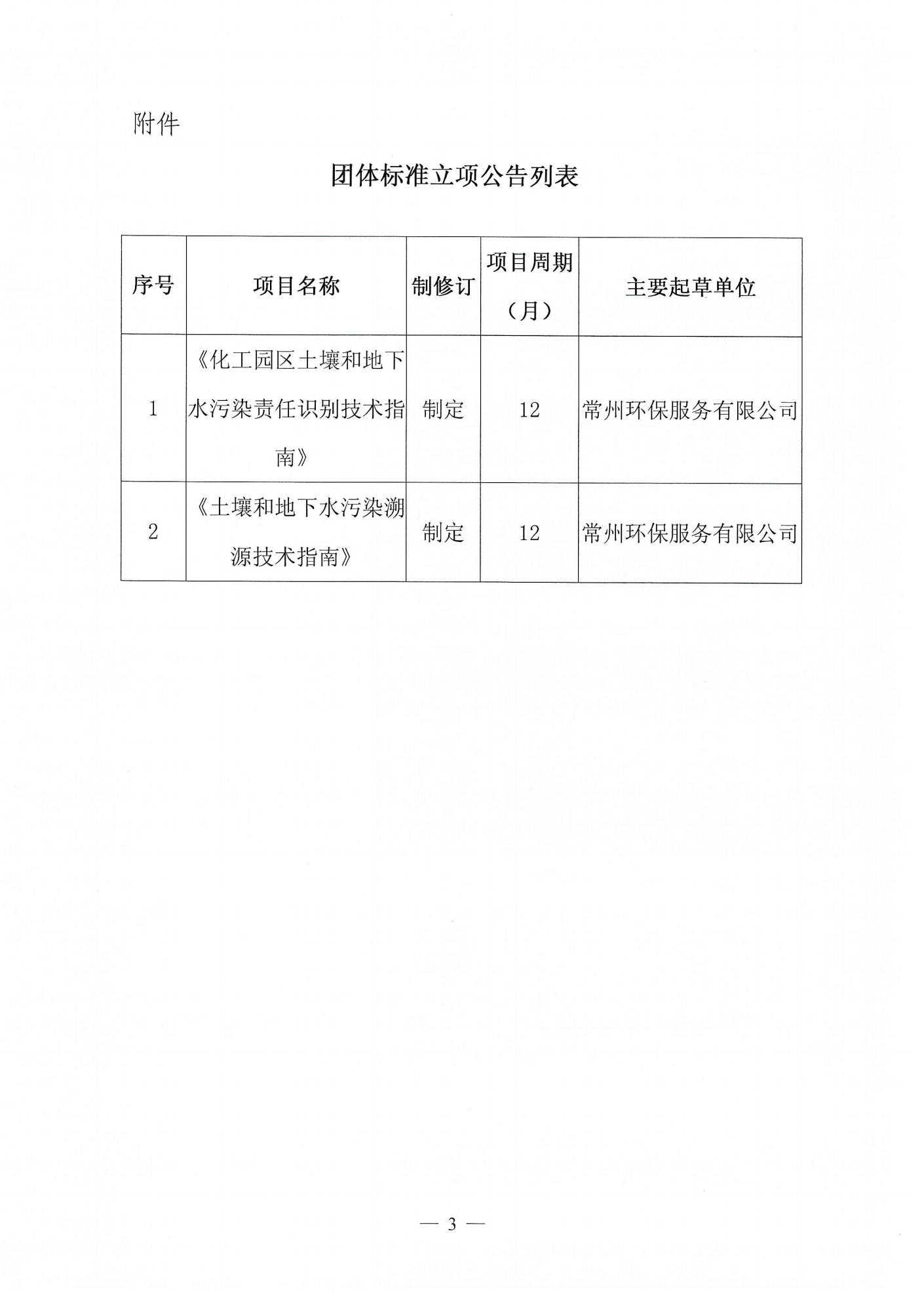 关于《化工园区土壤和地下水污染责任识别技术指南》、《土壤和地下水污染溯源技术指南》两项团体标准立项的公告