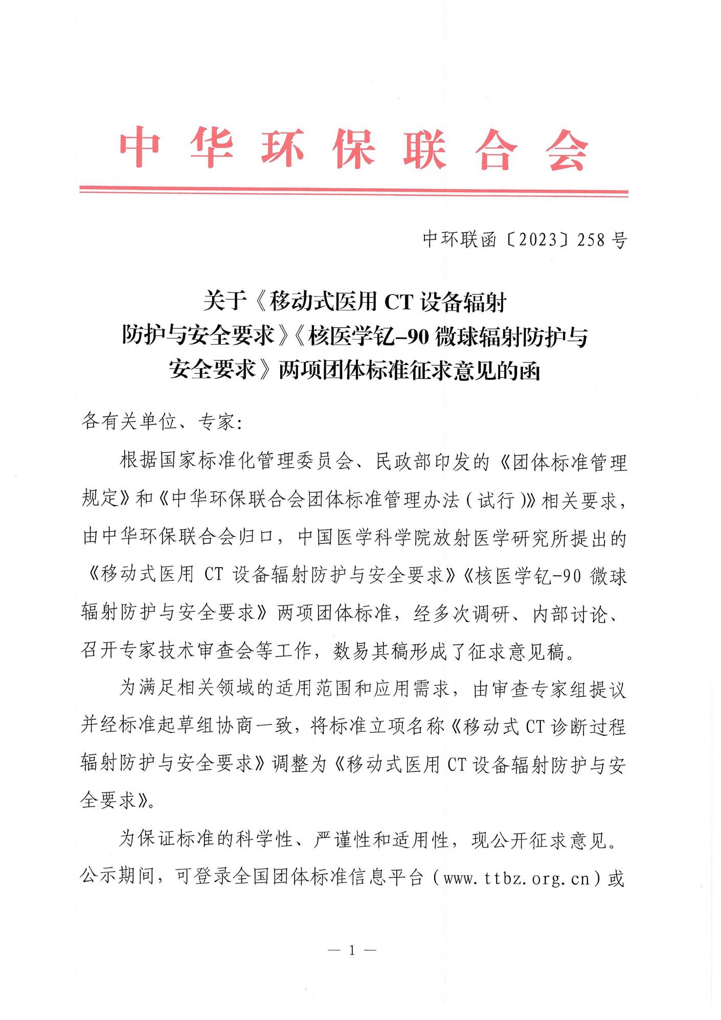 附件1、《移动式医用CT设备辐射防护与安全要求》(征求意见稿) |