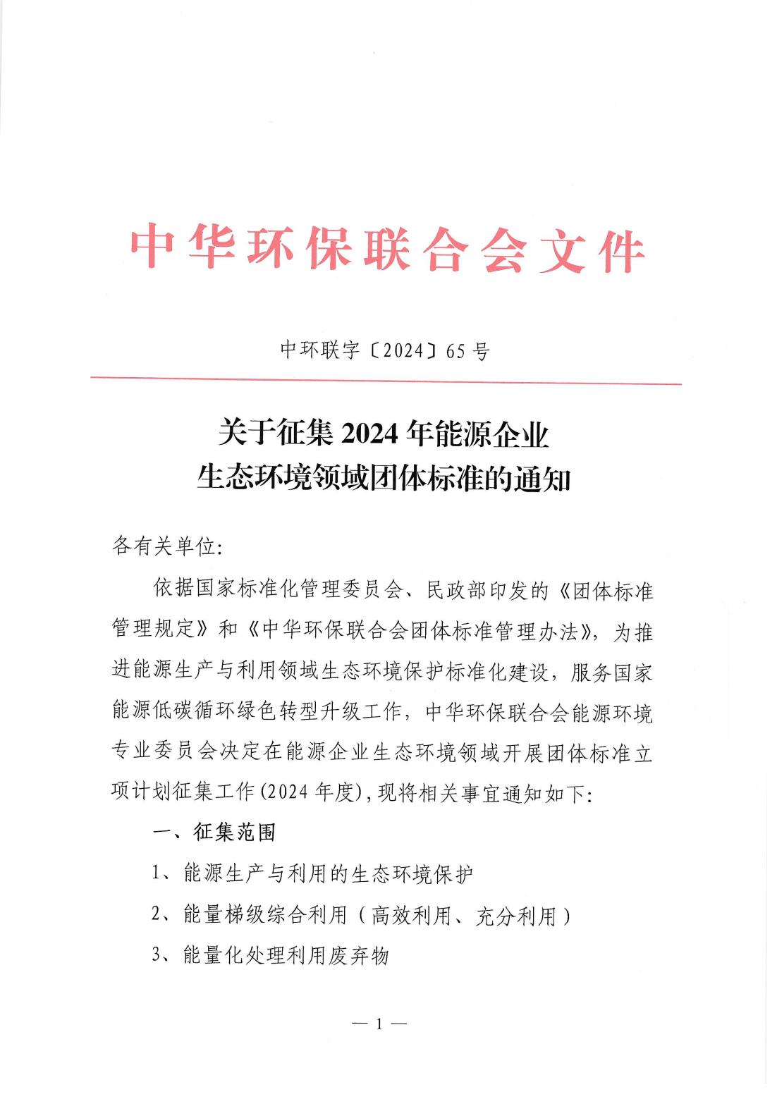 关于征集2024年能源企业生态环境领域团体标准的通知