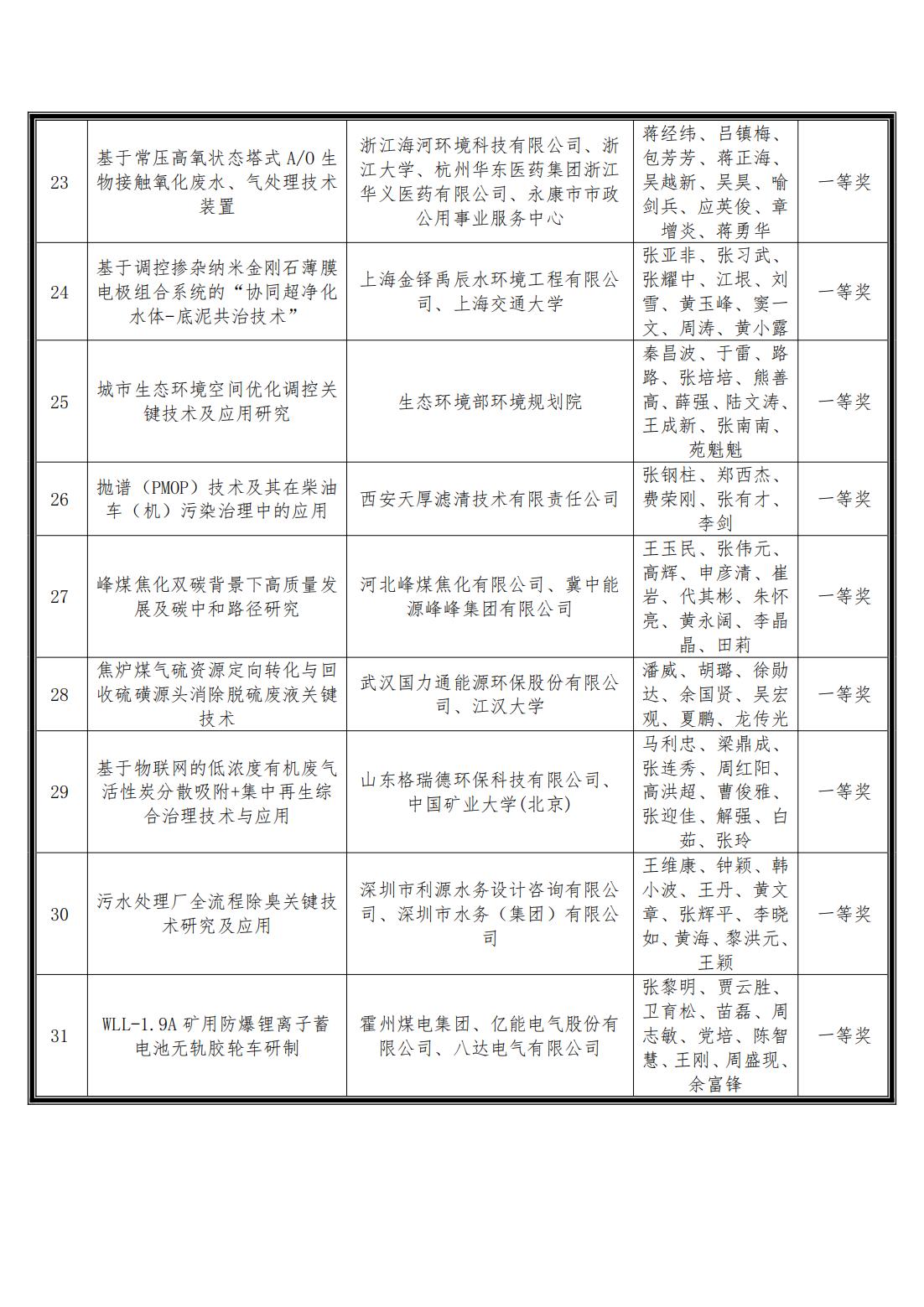 中华环保联合会关于公示2023年度科学技术奖评审结果的公告