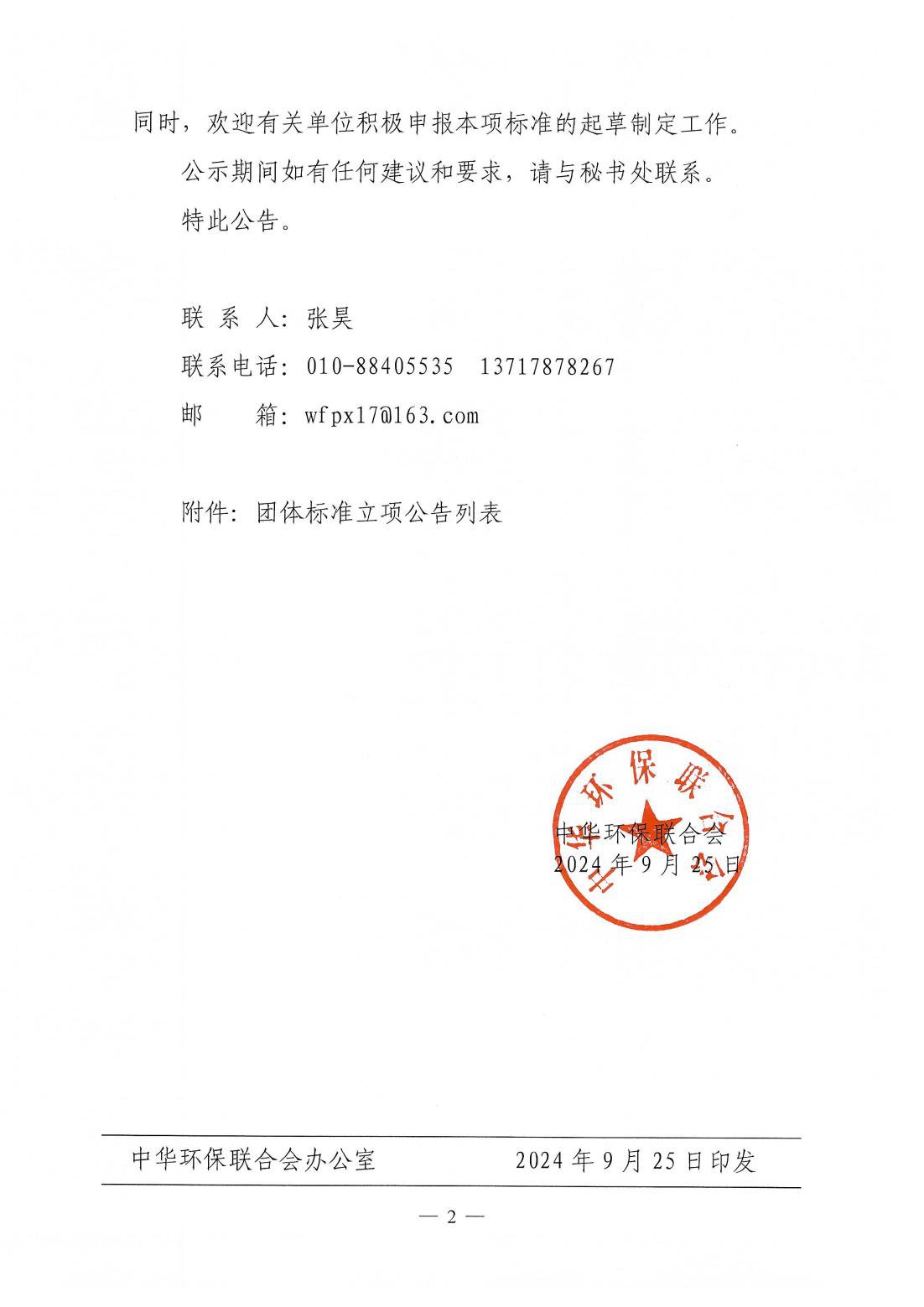 关于开展 2024年度中华环保联合会科