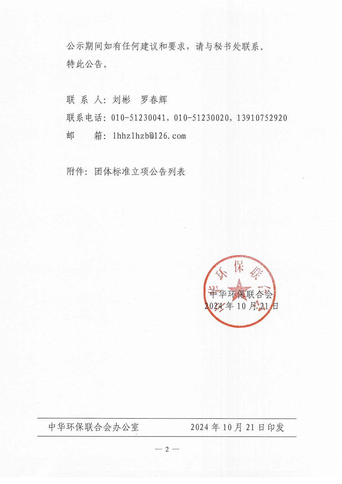 关于发布《中华环保联合会科学技