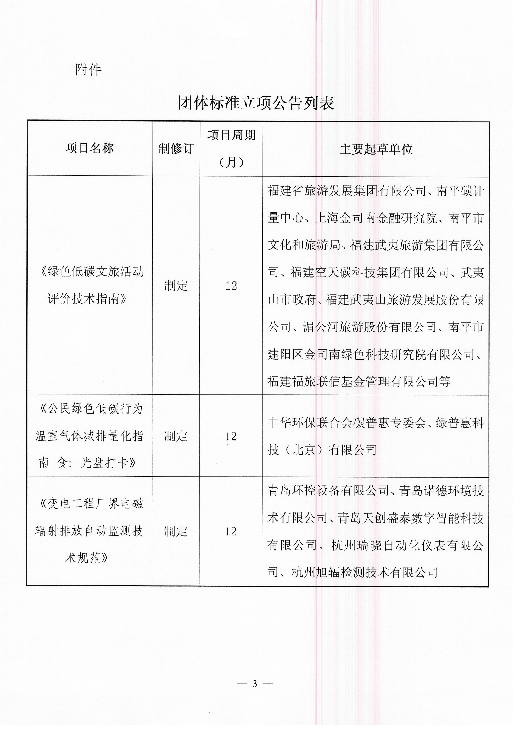 关于《绿色低碳文旅活动评价技术指南》《公民绿色低碳行为温室气体减排量化指南 食:光盘打卡》等三项团体标准立项的公告