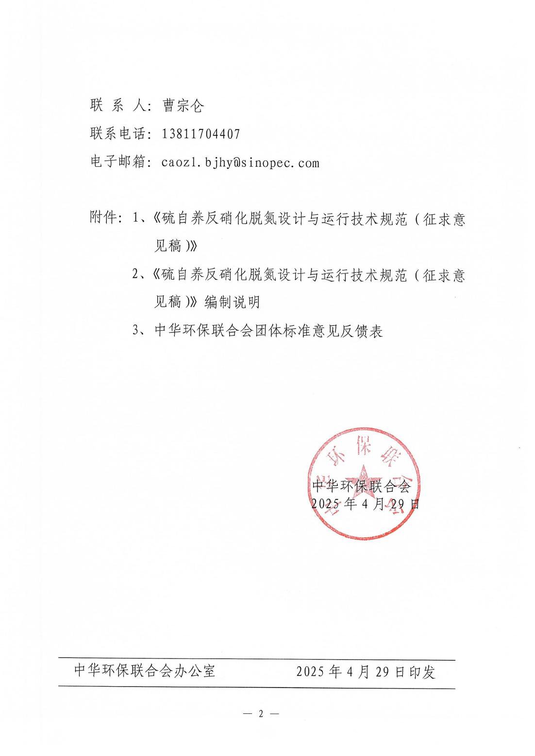 关于《硫自养反硝化脱氮设计与运行技术规范》团体标准征求意见的函