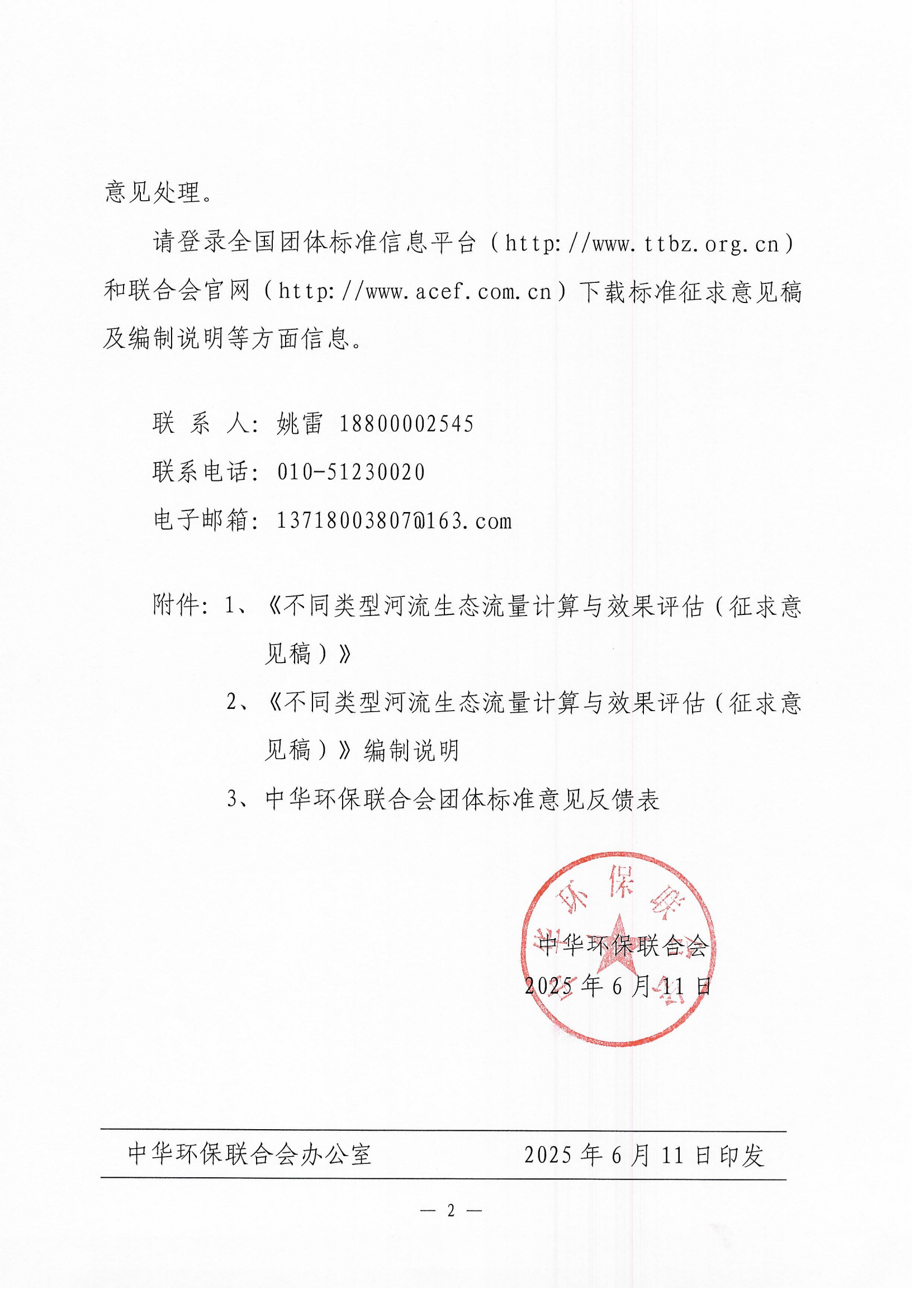 关于《不同类型河流生态流量计算与效果评估》团体标准征求意见的函