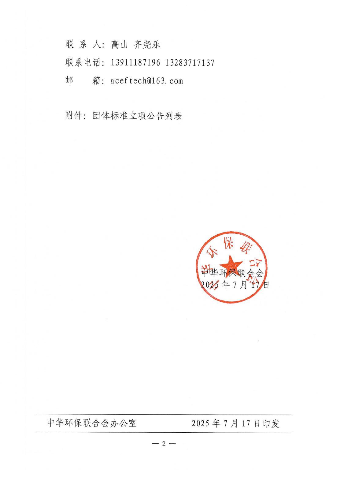 关于开展 2025年度中华环保联合会