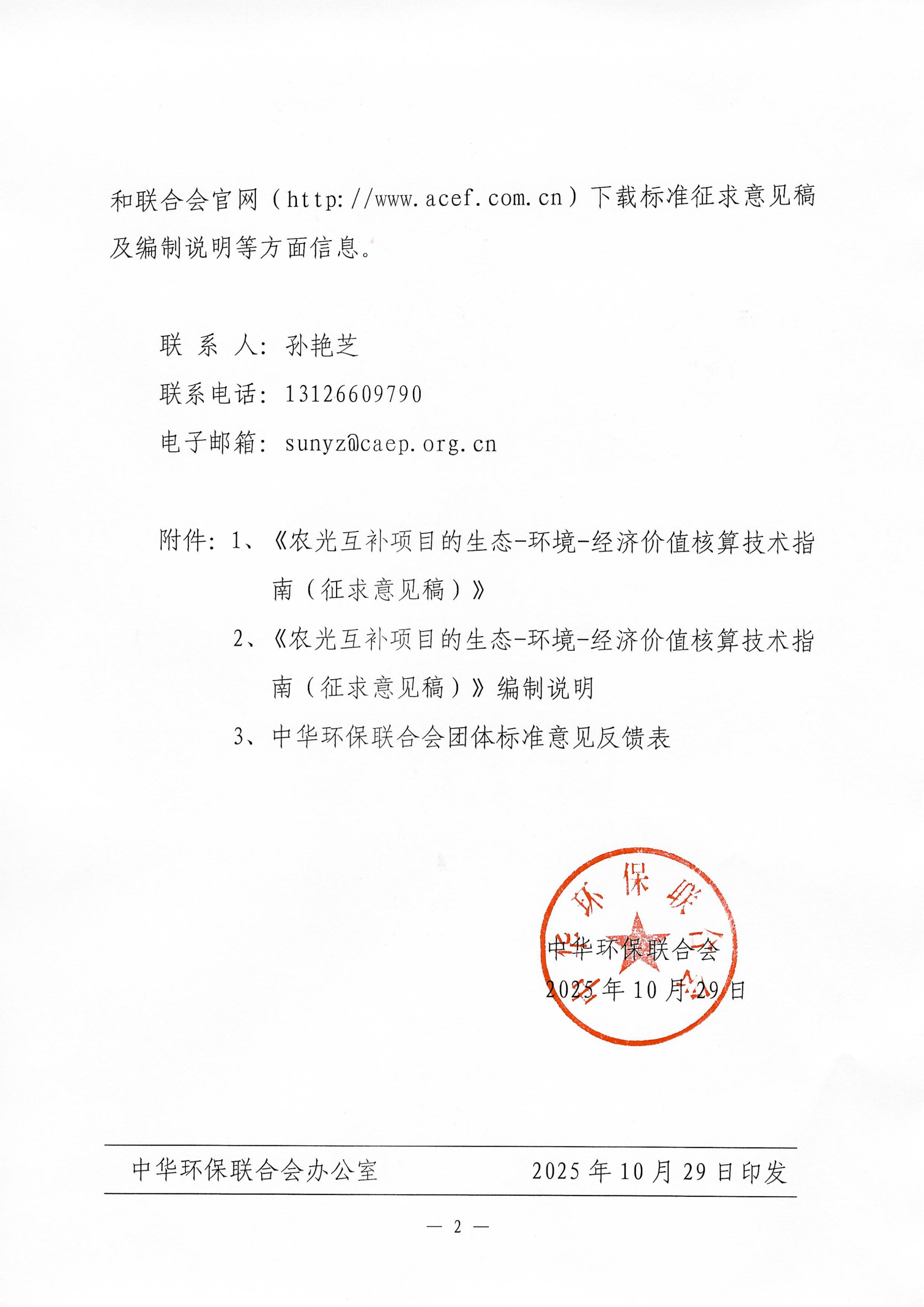 关于《农光互补项目的生态-环境-经济价值核算技术指南》团体标准征求意见的函