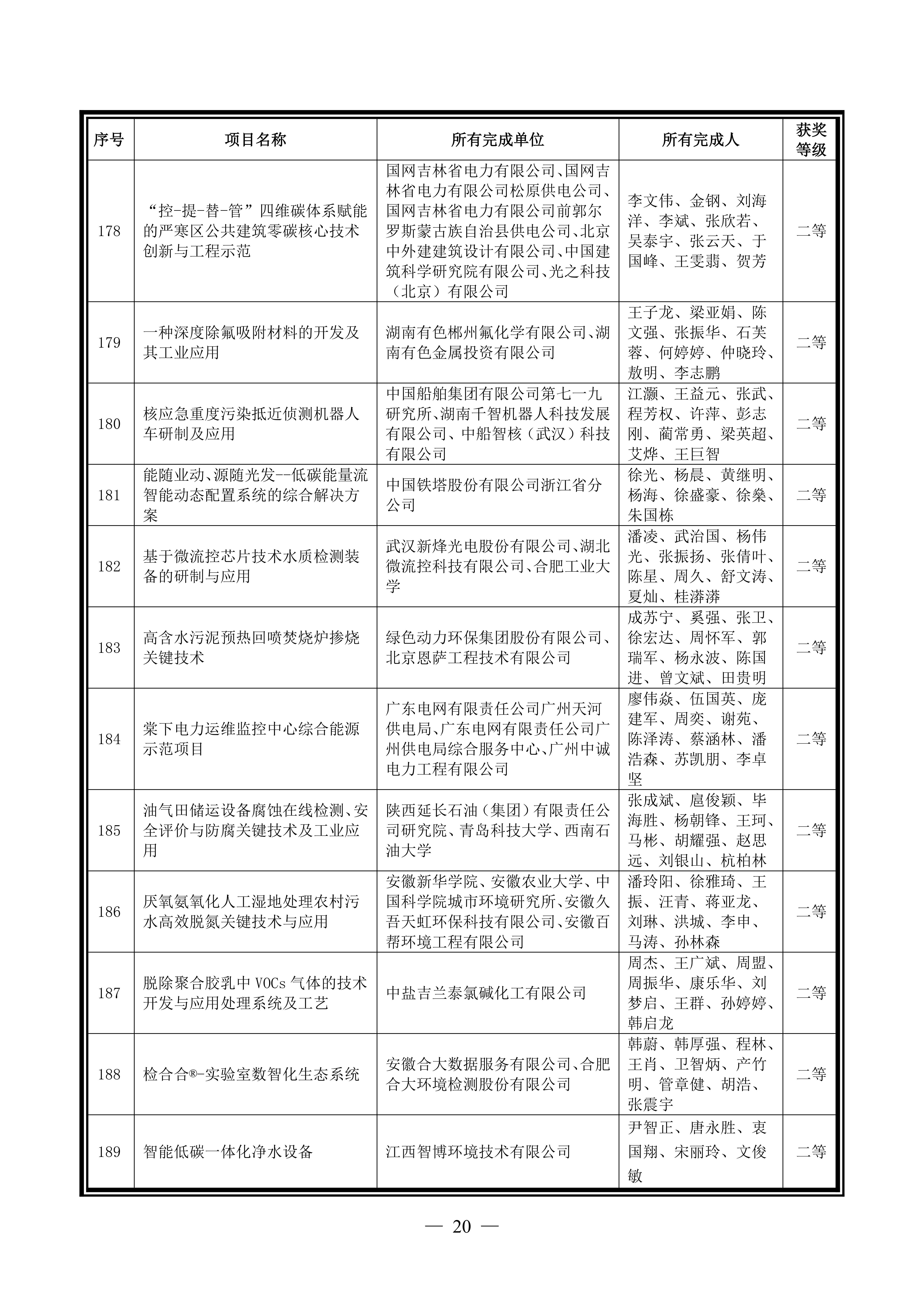 关于公布2020年度中华环保联合会