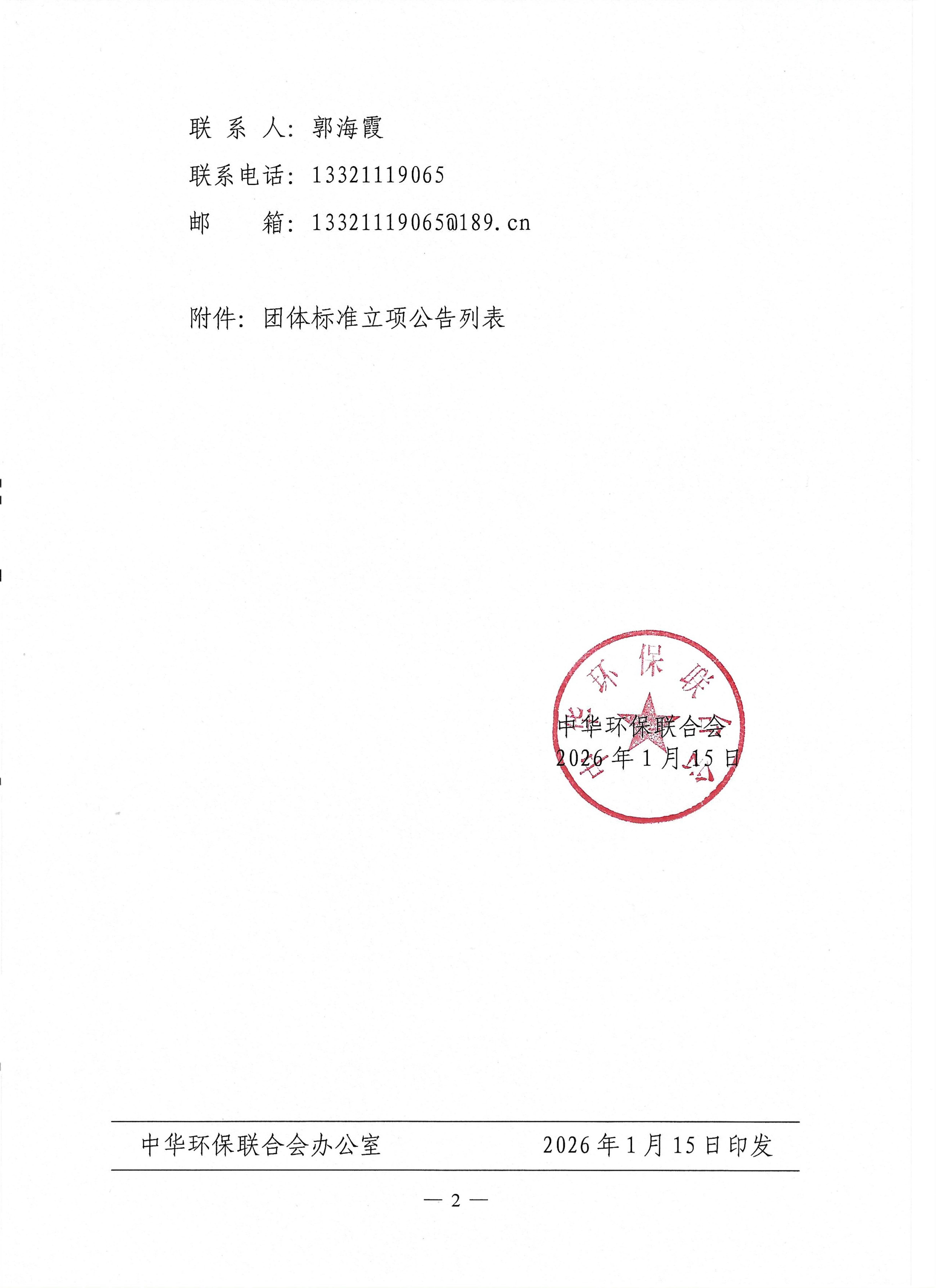 关于发布《中华环保联合会科学技