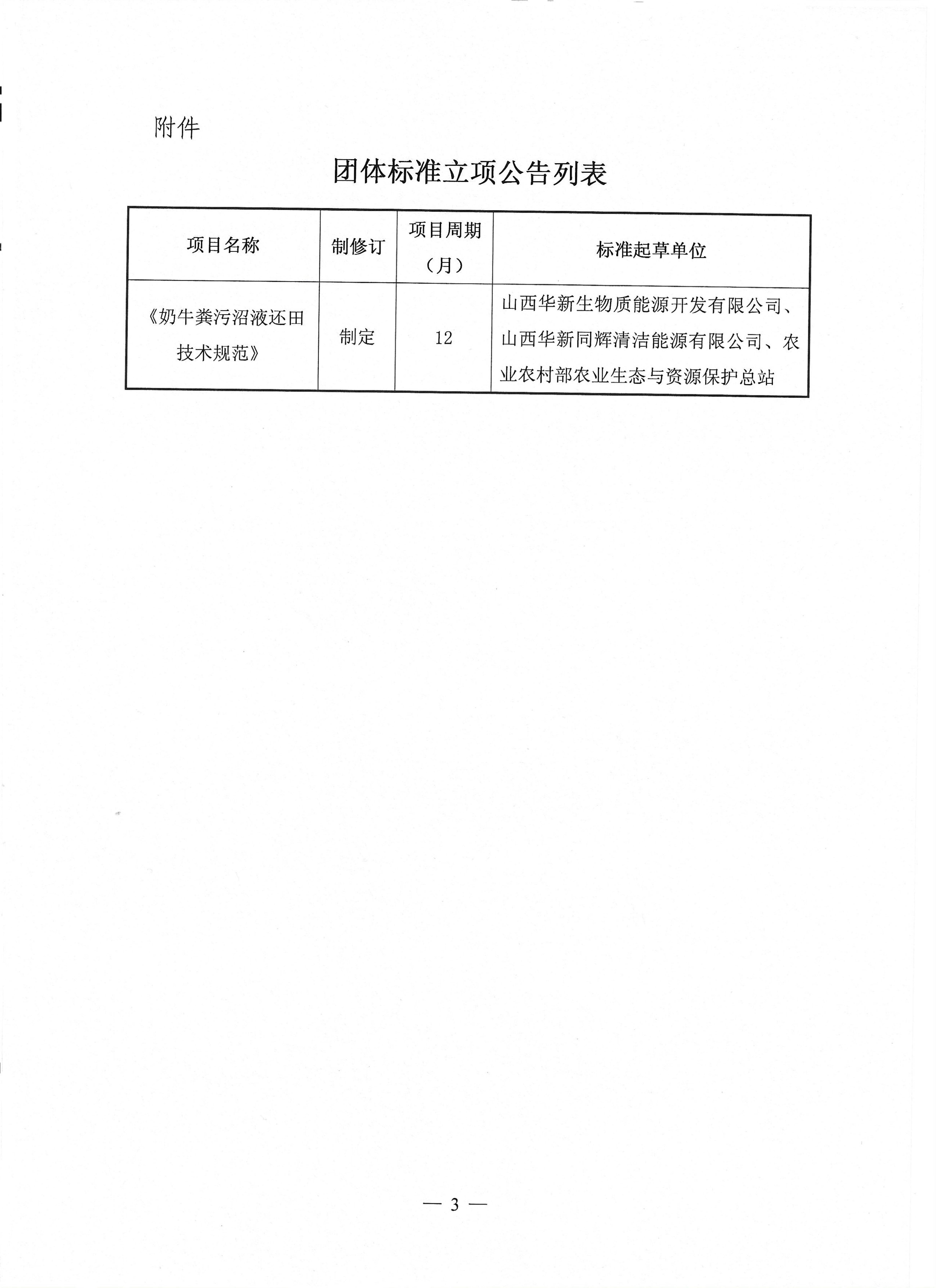 关于《奶牛粪污沼液还田技术规范》团体标准立项的公告