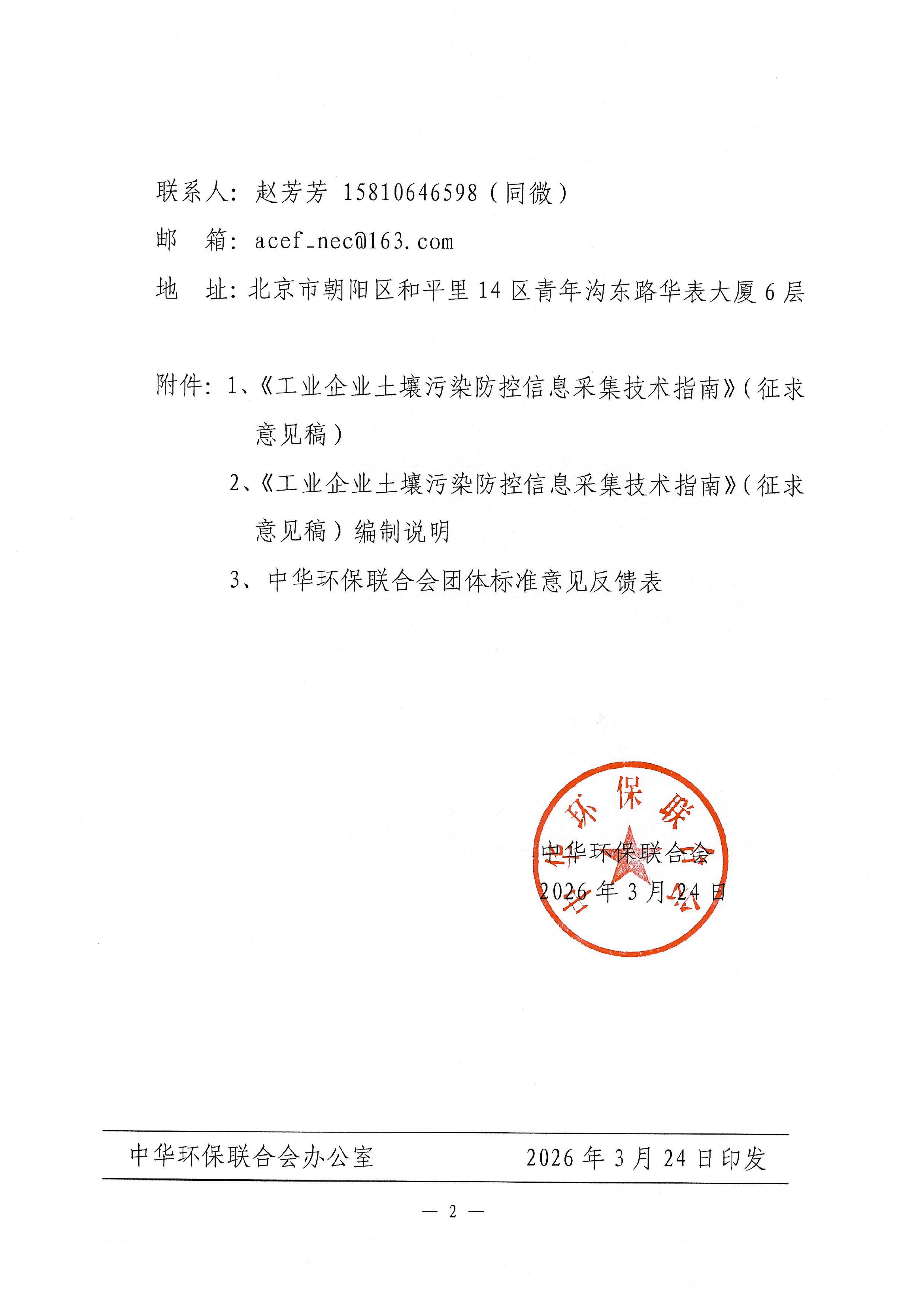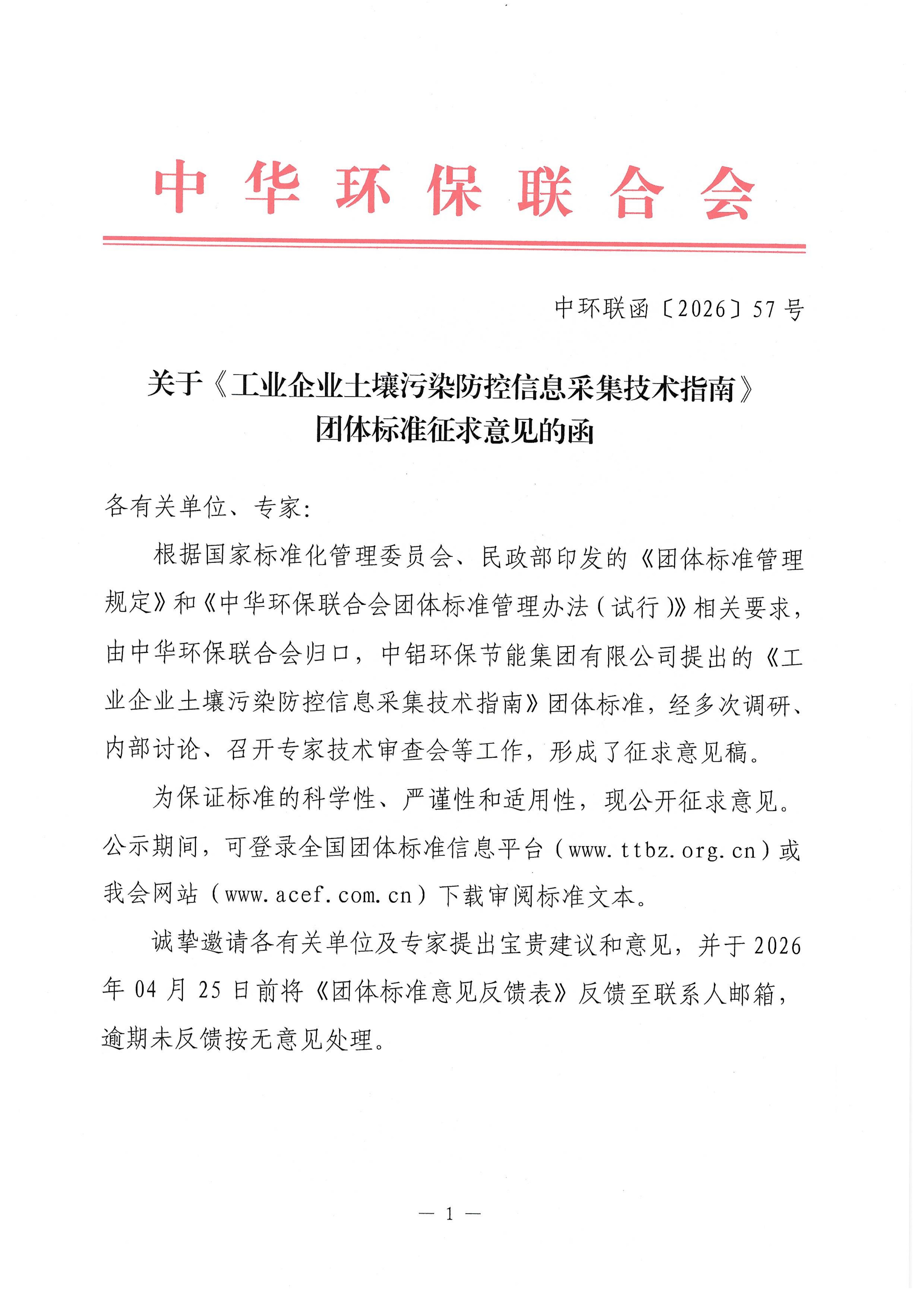 关于《工业企业土壤污染防控信息采集技术指南》团体标准征求意见的函