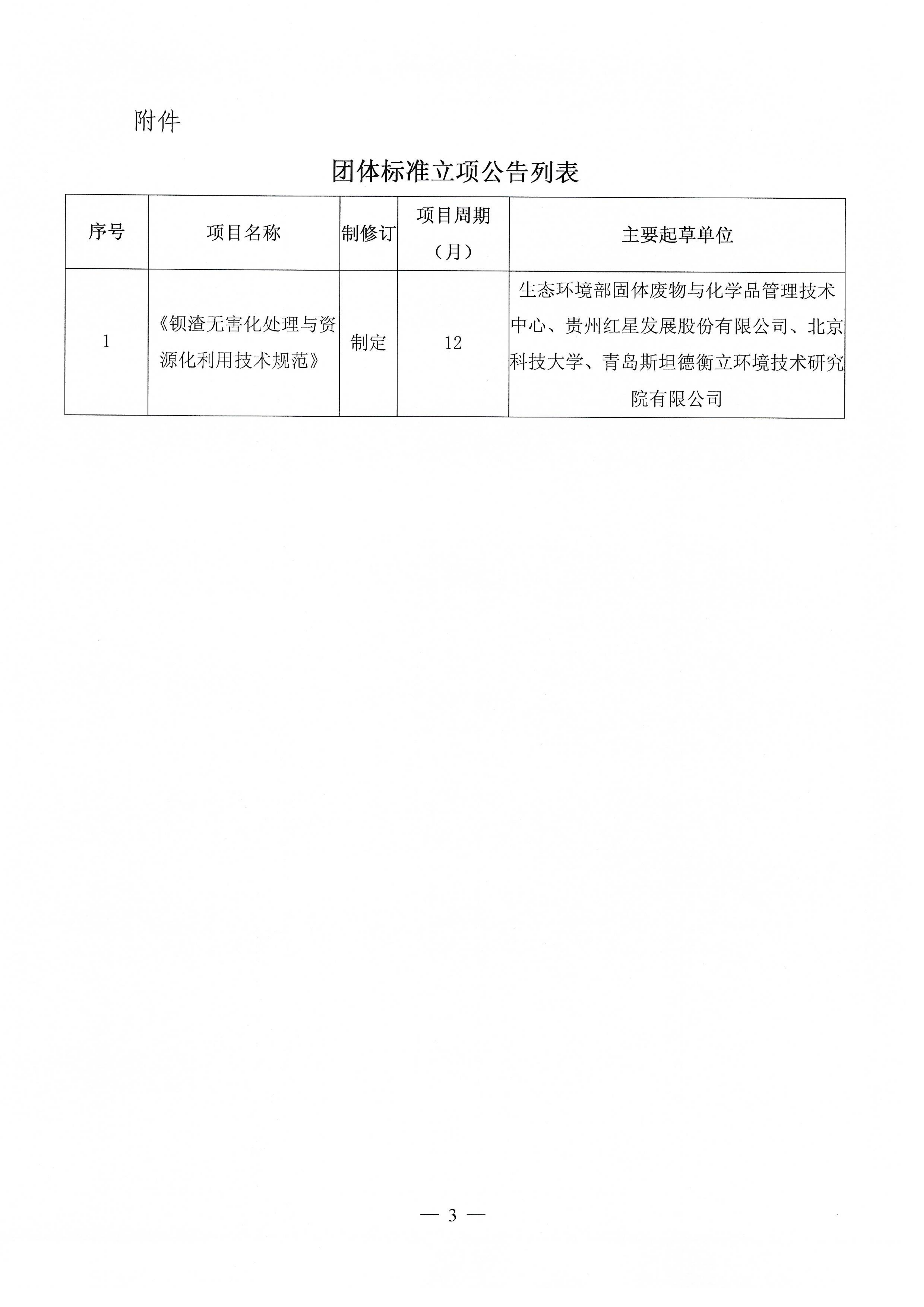关于《钡渣无害化处理与资源化利用技术规范》团体标准立项的公告