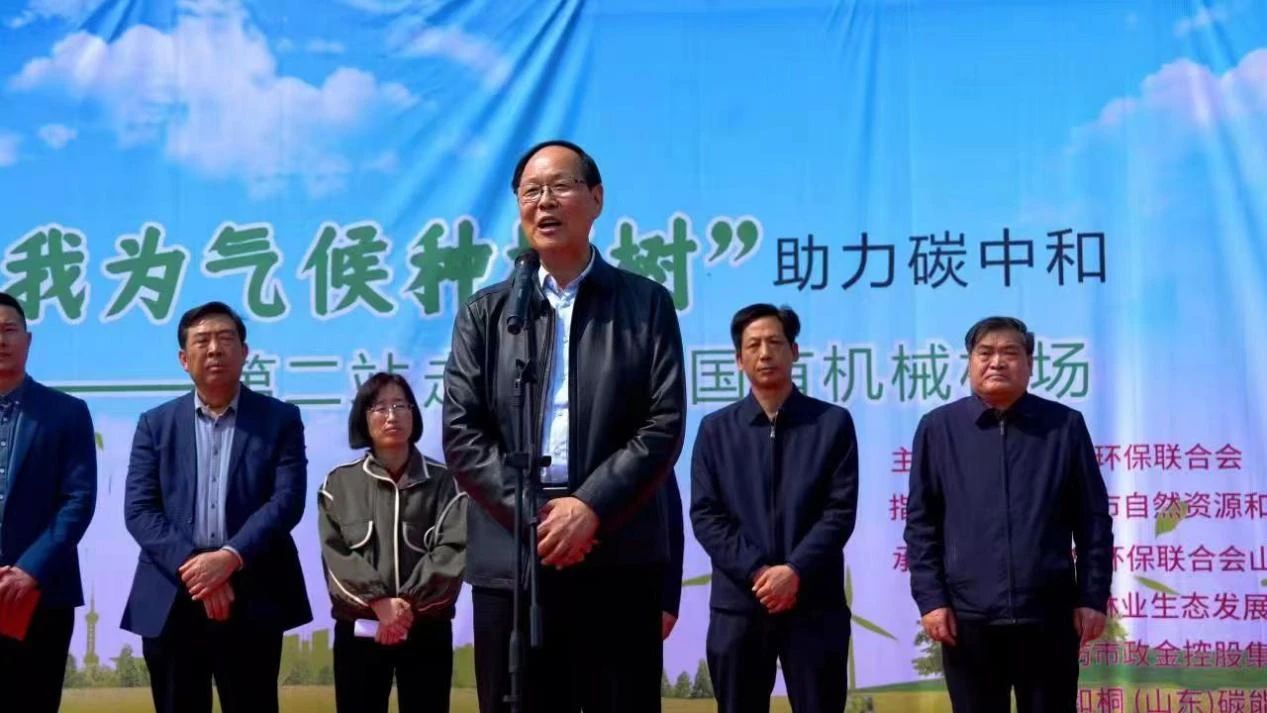 潍坊市自然资源和规划局负责人王垂军在致辞中说:潍坊市位于山东半岛中部,南靠沂蒙山、面朝渤海湾,陆域面积1.61万平方公里,海域面积1400平方公里,常住人口940万。是世界风筝都、中国画都、中国食品谷、中国动力城和蓝宝石城,被命名为全国文明城市、国家森林城市、国家环保模范城市、国家园林城市等等。我为气候种棵树公益活动,将促进公众广泛关注和参与植树造林,增强全民绿化意识和减排观念,为营建绿色地球、助力碳达峰和碳中和,承担一份责任,贡献一份力量。