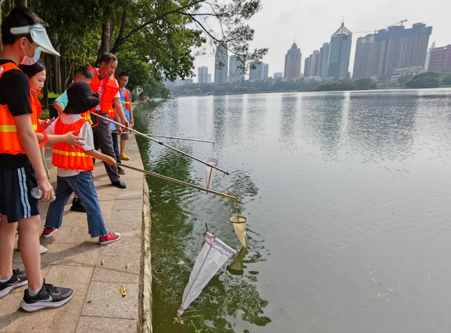 5月20日,系列活动之一的“浮游生物观察”科普活动在南宁市南湖公园举办。活动中,专家带领10组家庭到南湖边,用浮游生物网等专业工具进行湖水采样,并制作浮游生物玻片,并使用显微镜仔细观察标本,打开微生物的“奇妙世界”,为孩子们呈上一堂生动有趣的水生态科普课。
