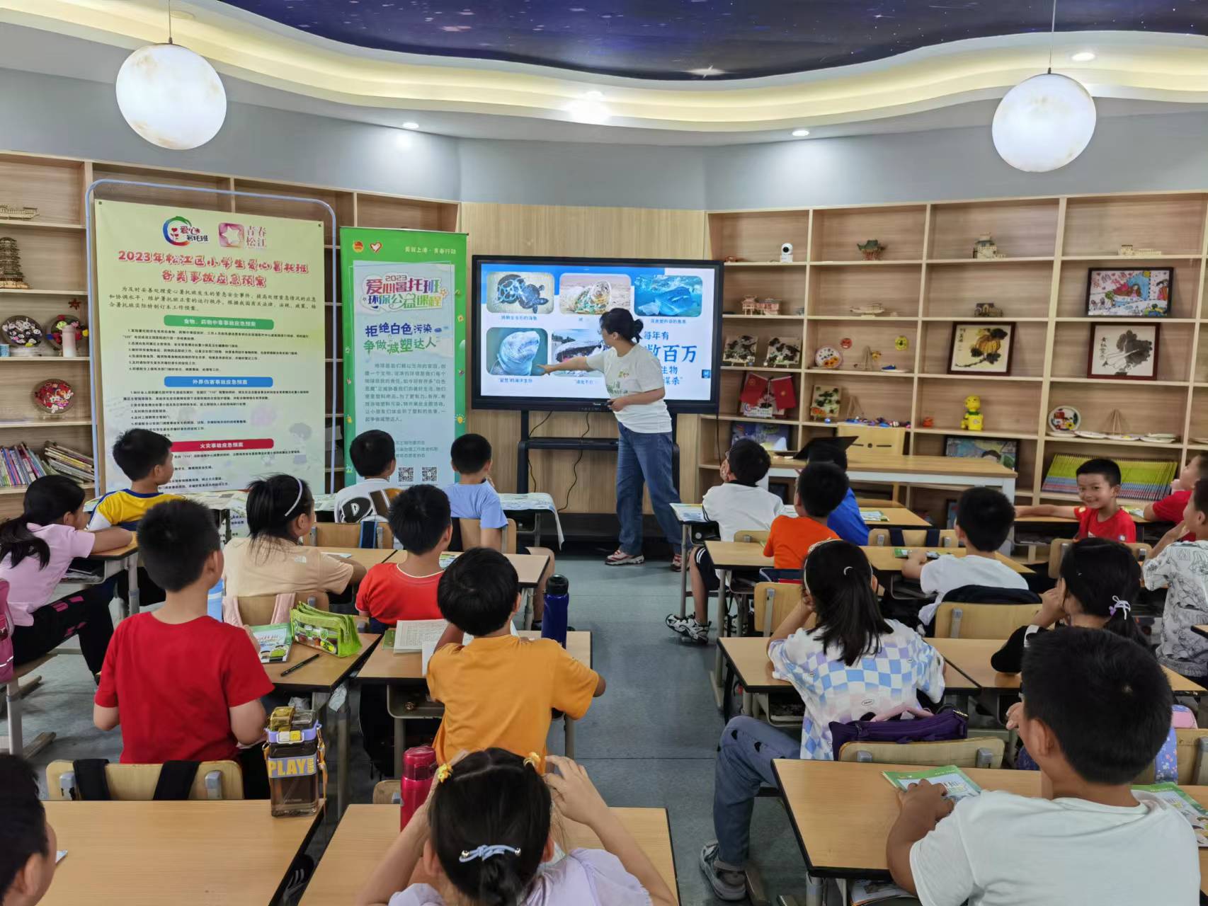 据了解,此次课程的主题为“拒绝白色污染,争做‘减塑’达人”,是今年爱心暑托班的环保公益课程之一。除此之外,《保护水环境 争做河小青》《爱“沪”生态绿家园,践行低碳“新时尚”》《守护“粮”心,不遗余“粒”》等公益课程也走进了孩子们身边。值得一提的是,公益课程的最新课件还深化了野生动物保护元素,这是《上海市野生动物保护条例》在青少年中的首次解读宣贯。