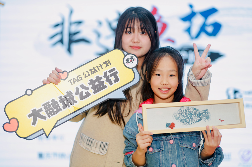 11月18日,在重庆市陆海国际传播公益基金会的指导下,大坪大融城携手传益千里、重庆市对外交流协会、重庆交通大学心灵公益服务团、重庆工商大学艺术学院党员服务站的高校志愿者们,一对一带领小小志愿者走进重庆大坪大融城,开展“非遗拓鱼,守护长江”主题公益活动,启发青少年的同理心和责任感,感知人与动物之间的关系。