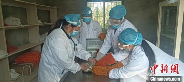 图为都昌县鄱阳湖野生动物救护协会会员正在救治候鸟。(资料图)受访者供图