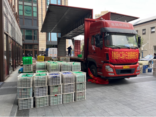 这些载重数十吨的卡车内装满了春笋、青菜、韭菜、油麦菜、生菜、包菜、莴苣、洋葱、茄子、黄瓜、草鸡蛋等新鲜蔬果和禽蛋等生活物资。这些保供物资随团购产品会免费赠送给小区居民。